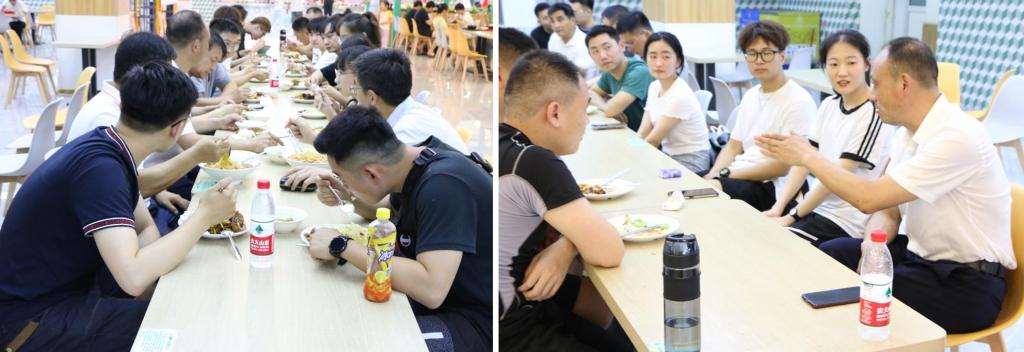 6月17日晚,学院领导老师和毕业班辅导员来到学校二食堂3楼与毕业生共进晚餐。晚餐会气氛融洽、交谈热烈,老师和同学们就大学学习生活及毕业就业等情况进行了广泛交流,老师还向同学们征询了关于学院建设和发展的意见建议。随后,学院领导老师来到毕业生宿舍,与同学们进行了深入交谈。