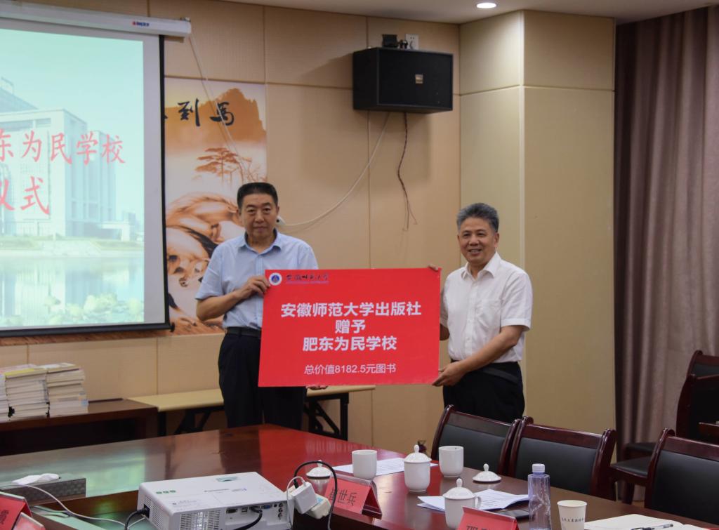 本网讯(英国正版365官方网站) 7月17日下午,公司党委常委、副董事长陆林,校教育基金会理事长沈洪、秘书长贡植斌,校团委书记汪凯,员工处副处长项家春,公司党委书记邵登辉、公司党委副书记崔世兵等一行看望慰问英国正版365官方网站赴肥东为民学校“一缕阳光”“阳光体育”爱心夏令营暑期社会实践团队。肥东县教体局党委书记、局长周新龙,教体局副局长王怀宁,肥东为民学校董事长赵卫东等热情接待陆林一行。在见面会上,领导老师就公司和为民学校的基本情况、学校管理及办学成果、员工社团及特色课程、支教情况及员工安全工作等方面进行了充分交流;队长杨光同学汇报了团队实践活动开展情况;程梦冉同学以《赓续薪火承先志,不改初心铸体魂》为题进行了一场特别的党史教育宣讲报告,表达了同学们“请党放心,强国有我”的豪迈志向和坚定决心;陆林代表校出版社为为民学校捐赠了一批图书。