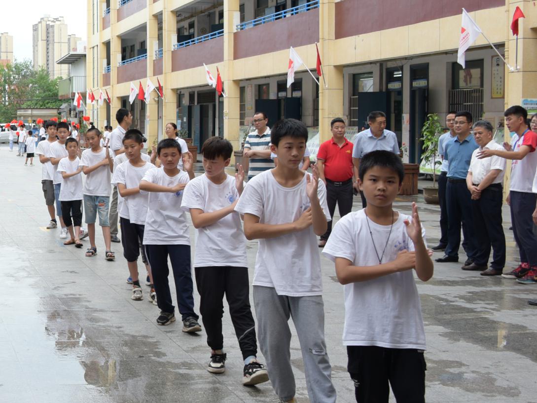 随后,陆林副董事长一行来到支教现场,聆听了支教团队小老师给小员工上的党史学习教育宣讲课,观摩了篮球、舞蹈、乒乓球、田径、手工、绘画、外语等课堂教学活动,还走进食堂和宿舍了解同学们的衣食住行情况。