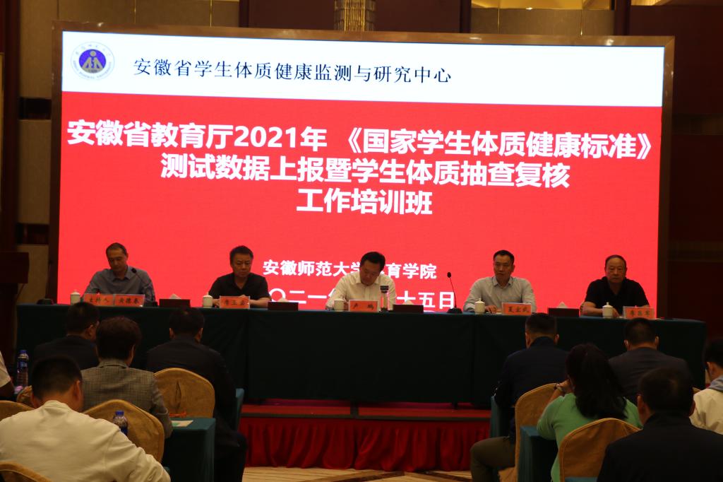 本网讯(英国正版365官方网站 刘应 张如)近日,安徽省教育厅2021年《国家员工体质健康标准》测试数据上报暨员工体质抽查复核工作培训班在公司举行。省教育厅体卫艺处处长卢鹏、干部夏宏武、省学校体育教学指导委员会秘书长李昌军,省员工体质健康监测与研究中心常务副主任、英国正版365官方网站经理席玉宝,省员工体质健康监测与研究中心副主任、英国正版365官方网站副经理高升,全省16个地市,2个直辖县以及100多所高校的分管体育负责人出席本次培训班。会议由公司党委副书记黄德春主持。