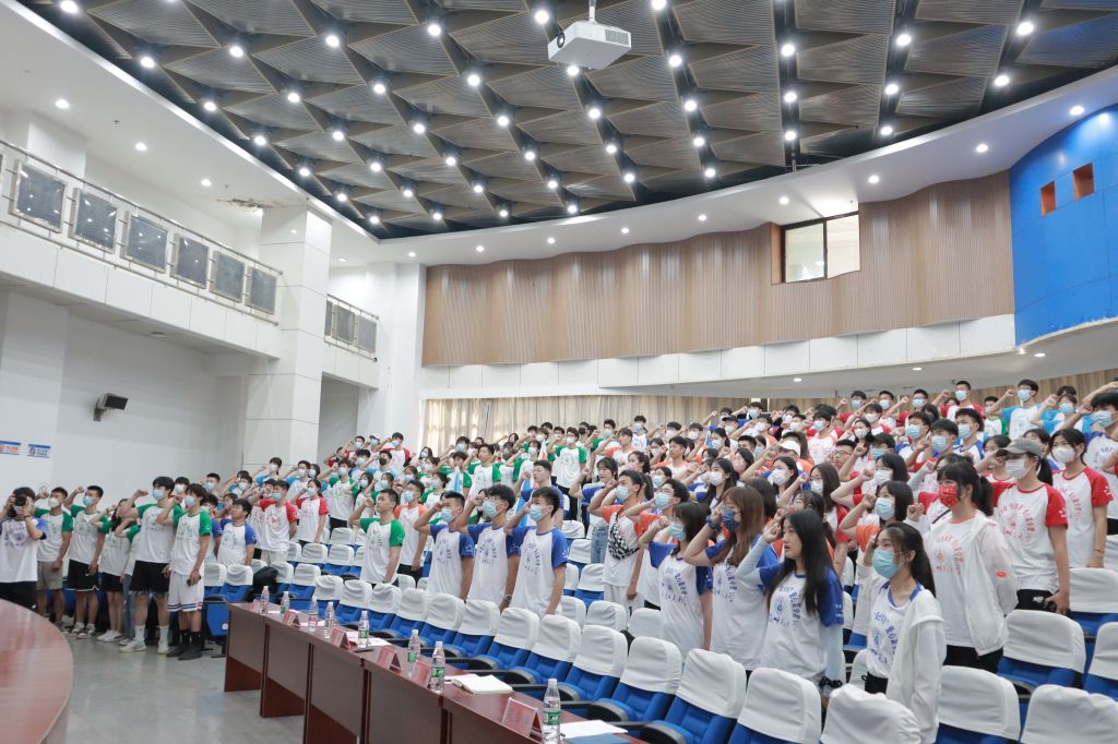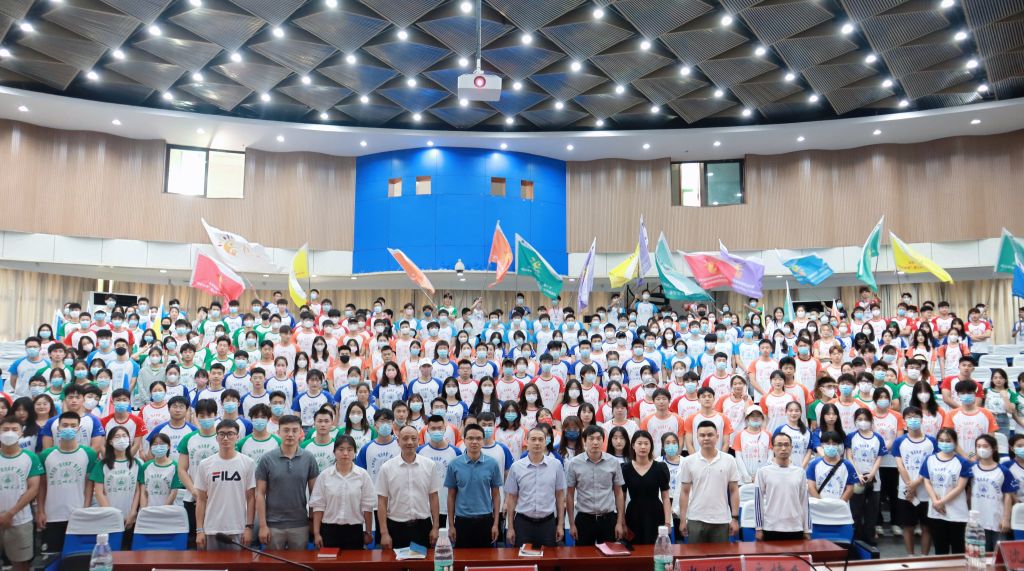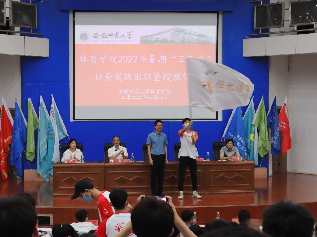 岳建军宣读了《关于成立英国正版365官方网站2022年暑期社会实践团队的通知》,崔世兵宣读《英国正版365官方网站老员工暑期社会实践安全须知》并提相关要求,沈文清在发言中期望同学们能在暑期社会实践中磨练心性、锤炼意志、锻炼恒心。志愿者代表庄严宣誓,表示要继续打造好英国正版365官方网站“阳光体育爱心夏令营”的金字品牌、充分发挥团结协作精神和奋进新征程的坚定决心。汪凯代表校团委向学院暑期社会实践团队授“阳光体育”队旗,领导老师向各重点团队授队旗。