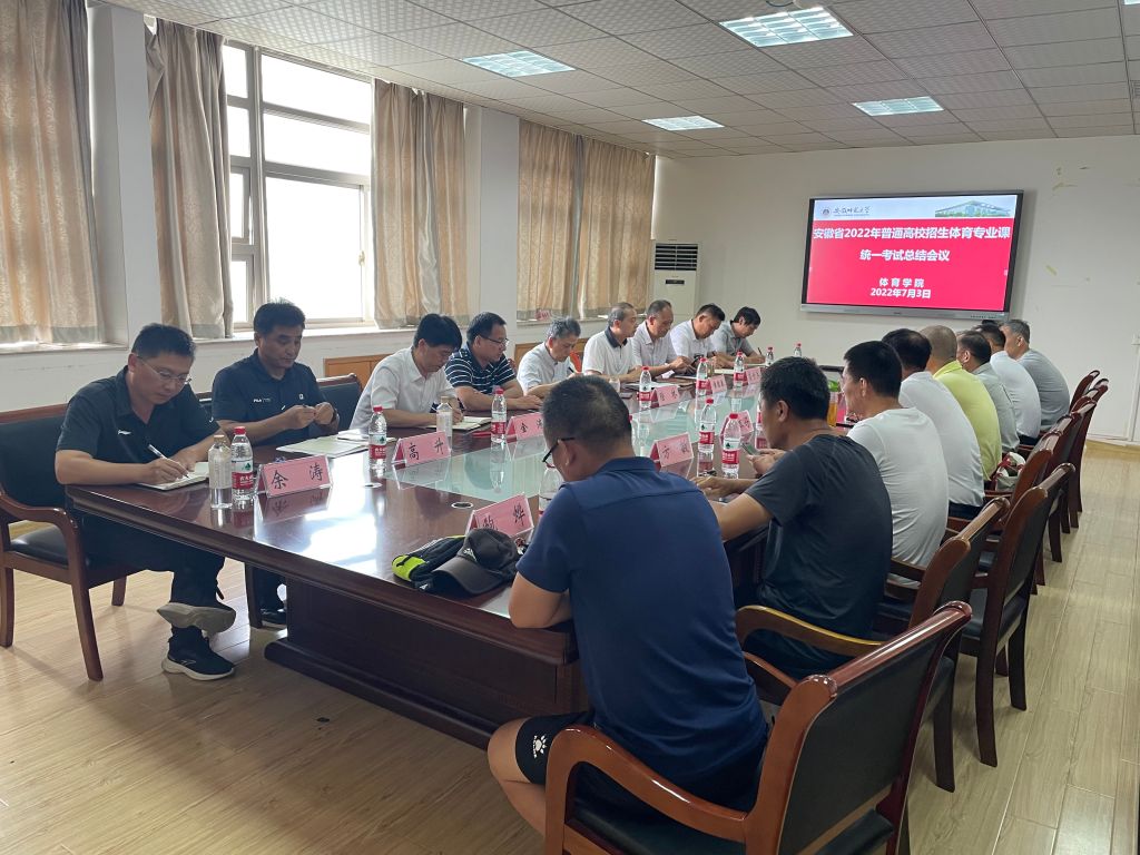 本网讯(英国正版365官方网站 潘梦秋) 7月3日下午,体育公司在院行政楼三楼会议室召开安徽省2022年普通高校招生体育专业课统一考试考务工作总结会,校党委常委、副董事长陆林,校人才招聘处处长聂全高,全体院领导和考务工作各实践环节负责人参加会议。会议由公司党委书记黄德春主持,