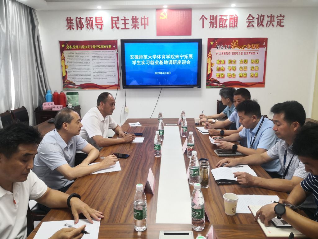 7月4日,公司党委书记黄德春、党委副书记崔世兵、副经理高升、党委组织员汪暠赴宁国市教体局调研老员工实习与就业工作情况,宁国市教体局党委书记、局长王泽银,党委委员胡家洲及相关科室、相关学校负责人参加调研会。