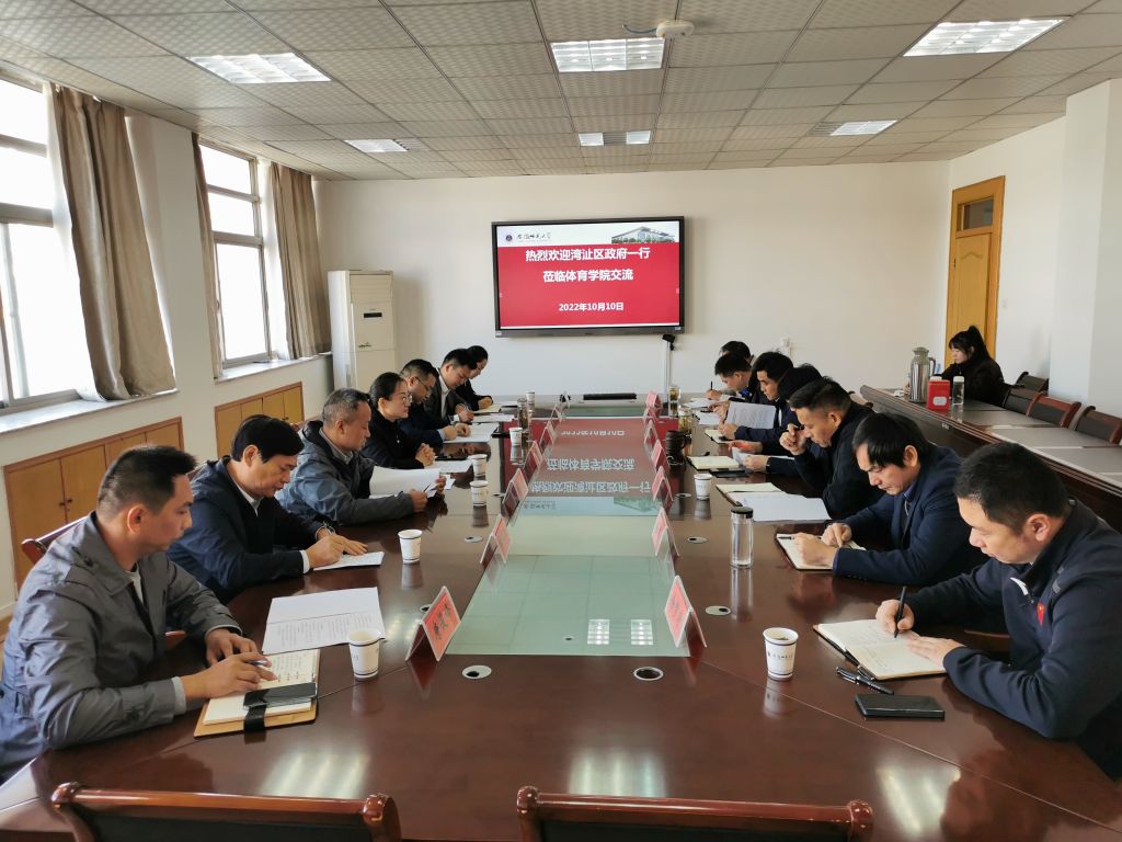 10月10日,湾沚区人民政府、英国正版365官方网站举行战略合作会商座谈会,共同研究推进地校合作高质量发展、助力全民健身示范区建设。湾沚区委常委、副区长梁燕,区体育局、芜湖医药卫生学校等单位负责同志,公司领导班子成员及有关人员参加座谈会。经理金涛主持会议。