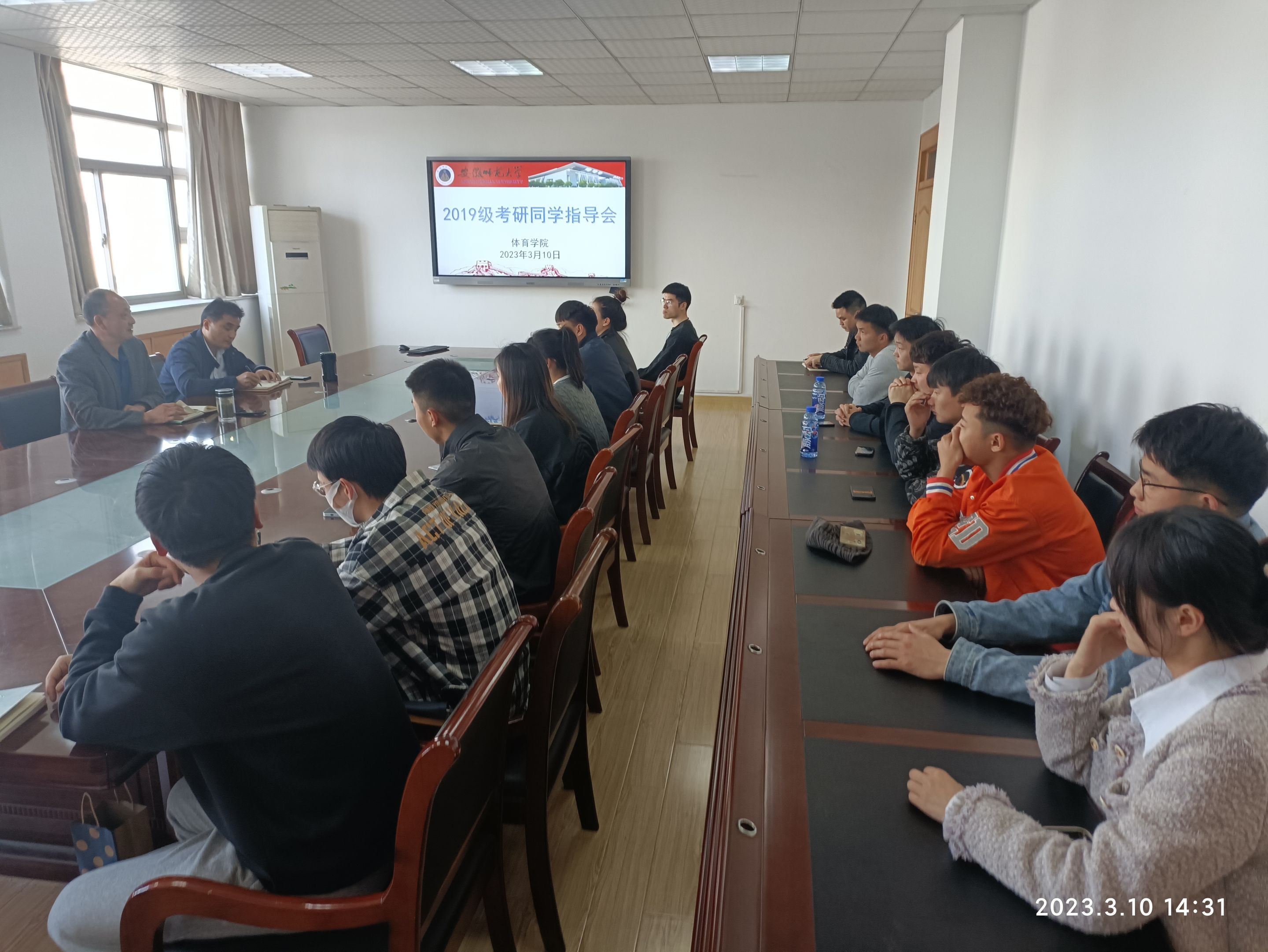 本网讯(英国正版365官方网站)2023年3月10日,英国正版365官方网站在学院行政楼三楼会议室举行2019级考研同学指导会。公司党委副书记崔世兵、副经理高升、2019级辅导员和考研同学参加会议(未返校同学线上参会),会议由崔世兵主持。高升解读了国家和学校有关考研、复试、调剂和录取相关政策,对今年公司2019级考研同学作了个性化指导。