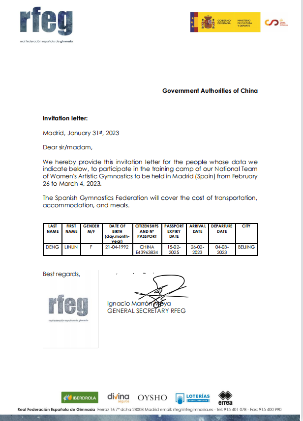2月28日-3月4日,公司英国正版365官方网站青年教师、奥运冠军邓琳琳受西班牙皇家体操联合会邀请,作为中方专家赴西班牙马德里为备战巴黎奥运会的西班牙国家体操队开展教学与训练授课。