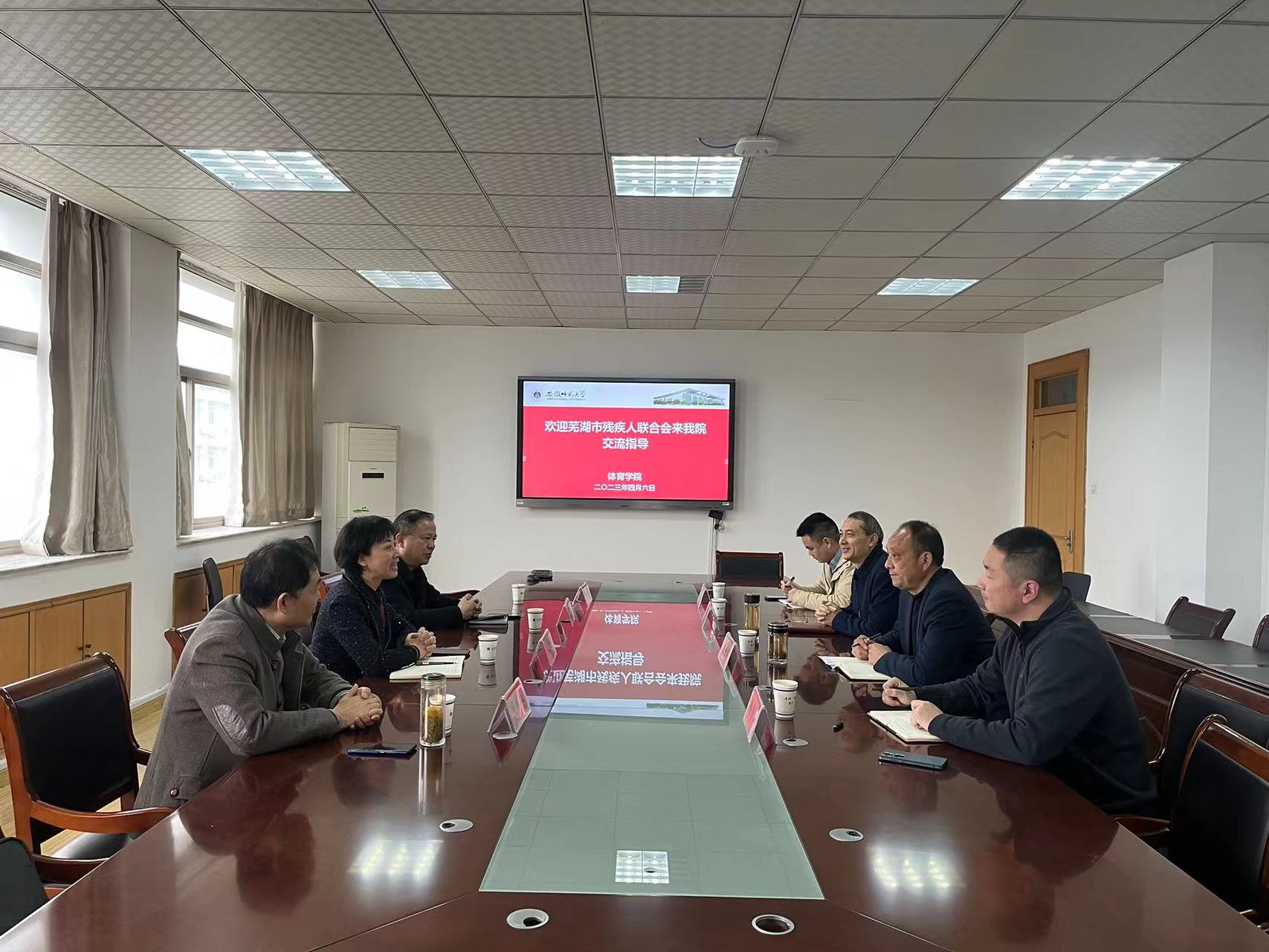近日,英国正版365官方网站与芜湖市残联在学院三楼会议室举行战略合作会商座谈会。市残疾人联合会党组书记、理事长陈玉红,副理事长陈开宏、邹培义,公司党委书记黄德春、副书记崔世兵及有关人员参加座谈会。