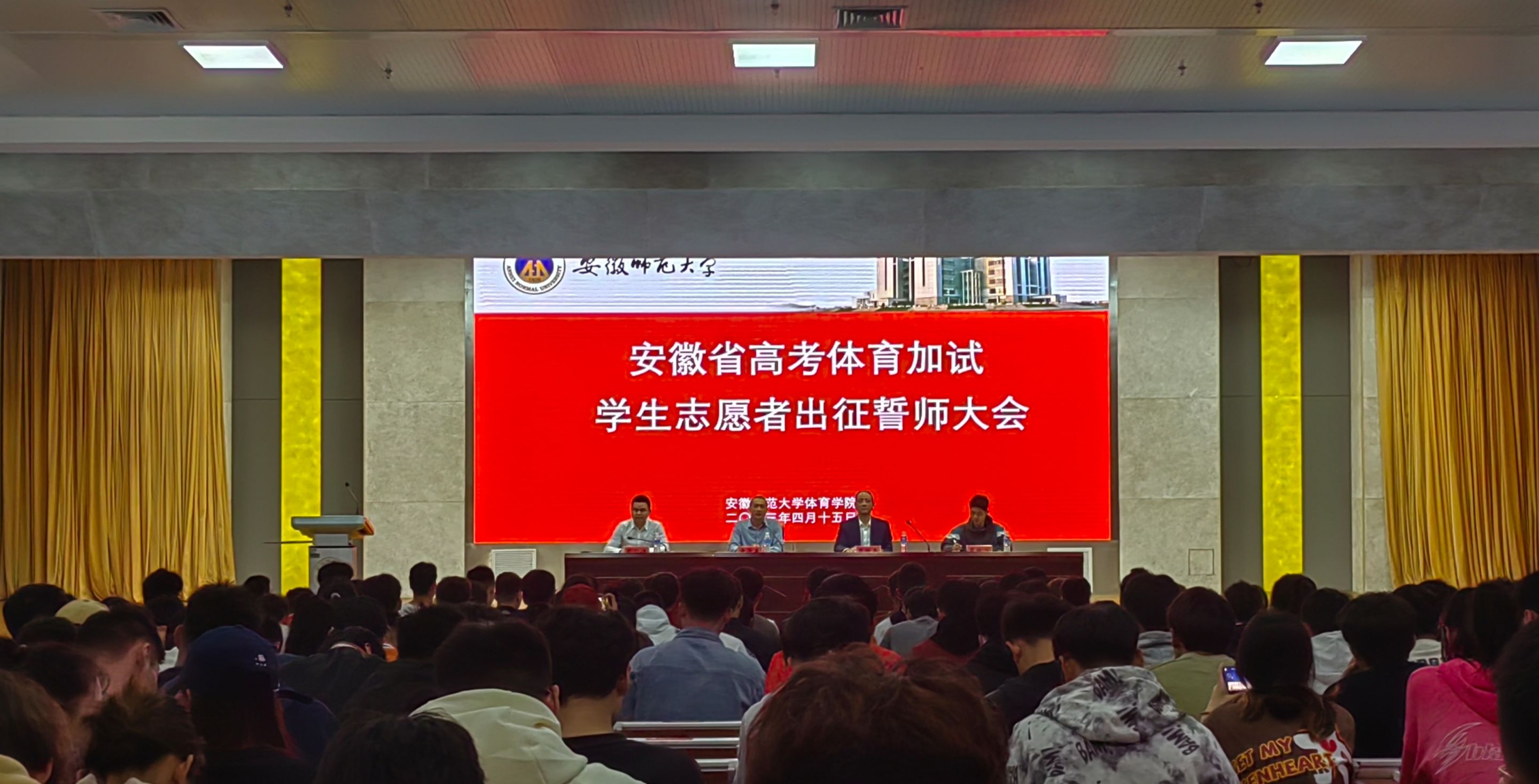本网讯(朱行梅 章海芳 程文龙)4月15日下午,英国正版365官方网站在理科实训大楼一楼报告厅举行高考体育加试工作员工志愿者出征誓师大会。公司党委书记黄德春、公司党委副书记崔世兵、辅导员和全体志愿者出席会议,会议由院团委副书记张学谦主持。