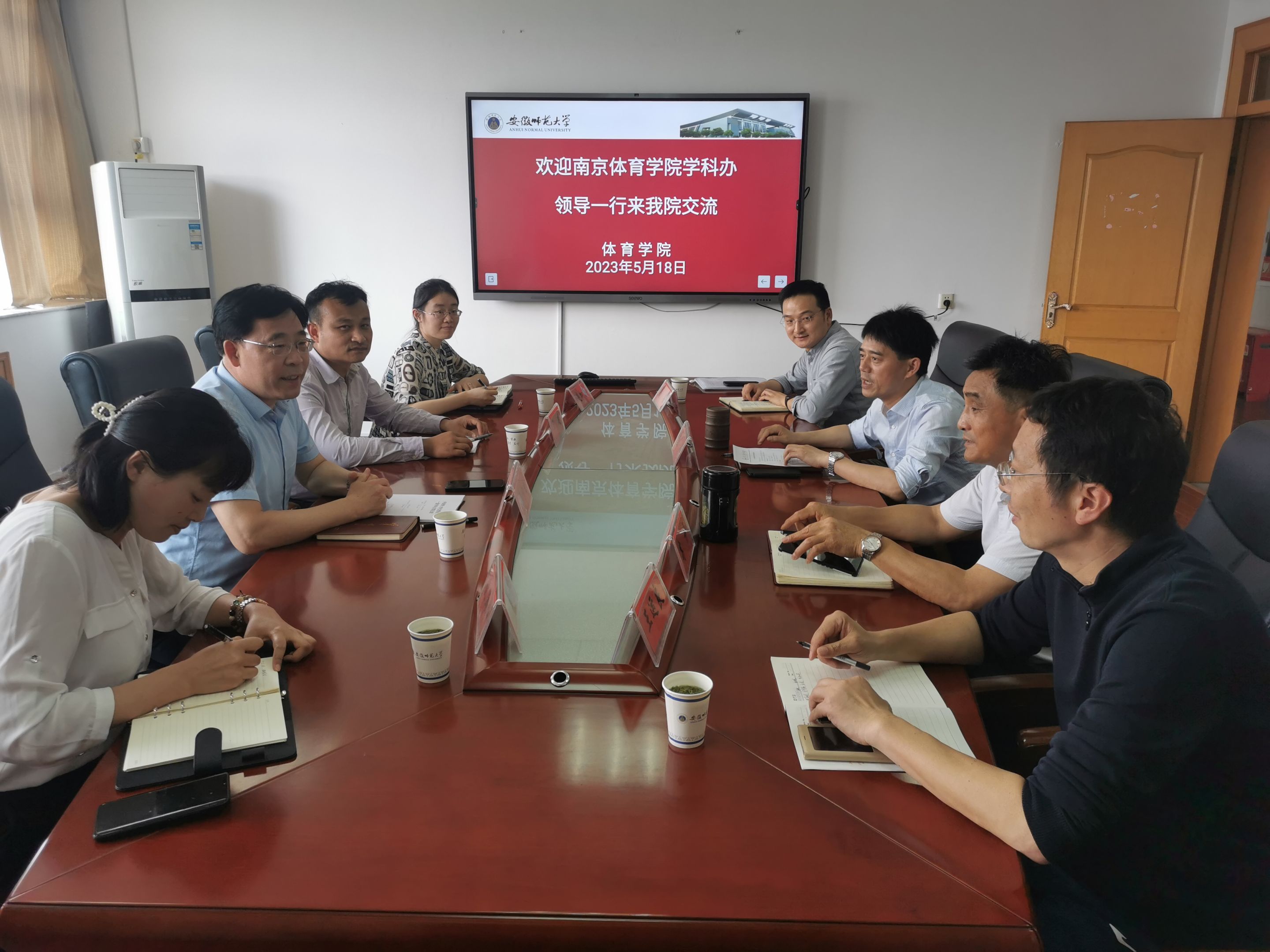 金涛代表学院对郭修金教授一行的到来表示欢迎,并介绍了学院发展情况;郭修金介绍了南京英国正版365官方网站办学情况及博士点申报情况,并咨询公司办学特色以及博士点申报和建设过程;葛睿从博士点申报着手,谈了凝练优势、注重细节等意见;高升从团队建设方面谈了凝练学科特色、凸显专业优势等5点经验;王运良老师谈了与省内其它相关高校体育专业差异化优势等3点意见;最后金涛介绍了公司团队建设特色以及博士点申报和建设过程情况,希望同南京英国正版365官方网站加强合作和交流。