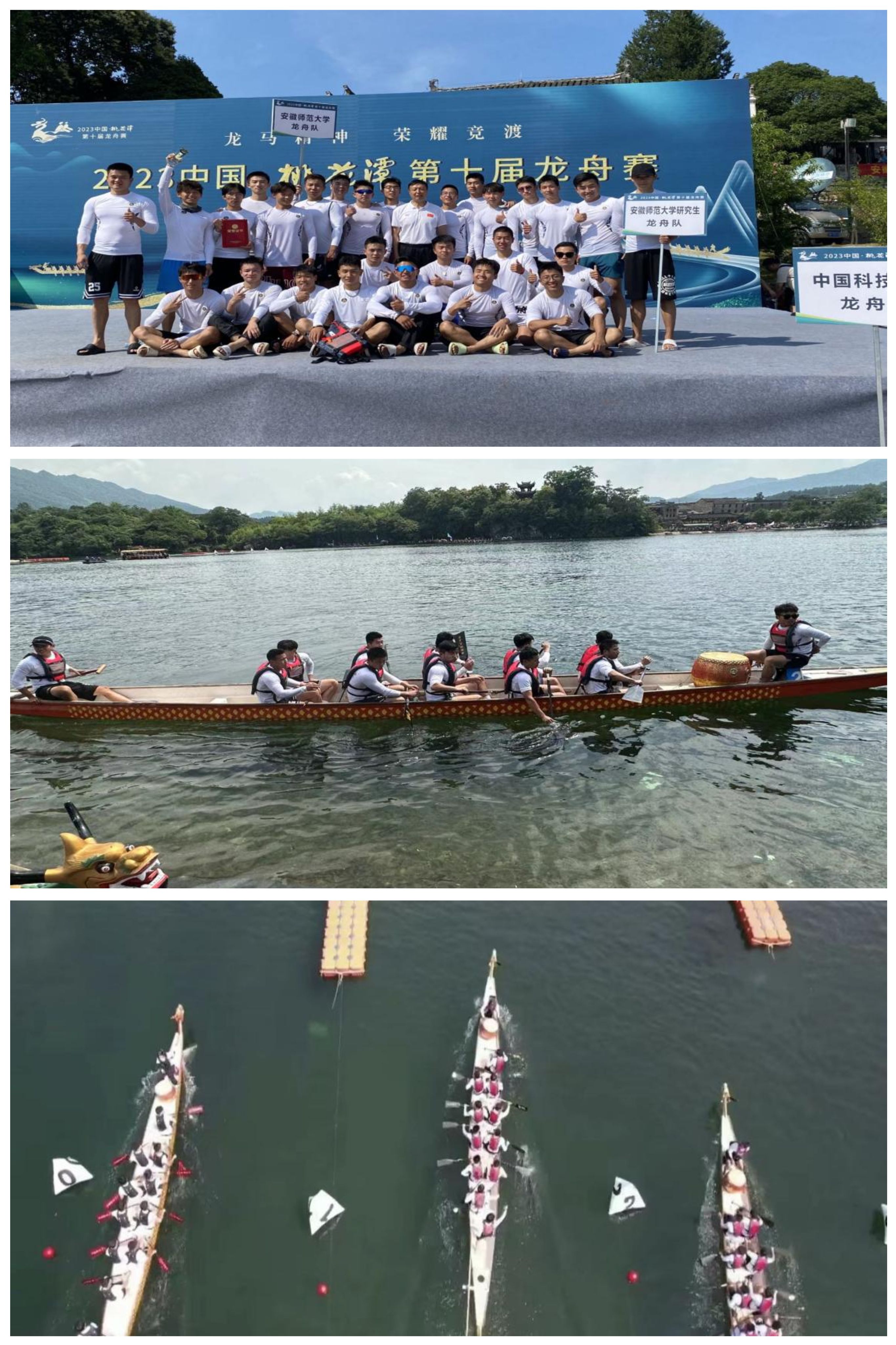 龙舟竞渡是端午节期间开展的一项传统体育活动。2023年中国·桃花潭第十届龙舟赛在安徽省泾县桃花潭火热开赛。公司本科生和研究生两支龙舟队,在领队体育学公司党委书记黄德春、教练蒋先军的带领下参加此次比赛。