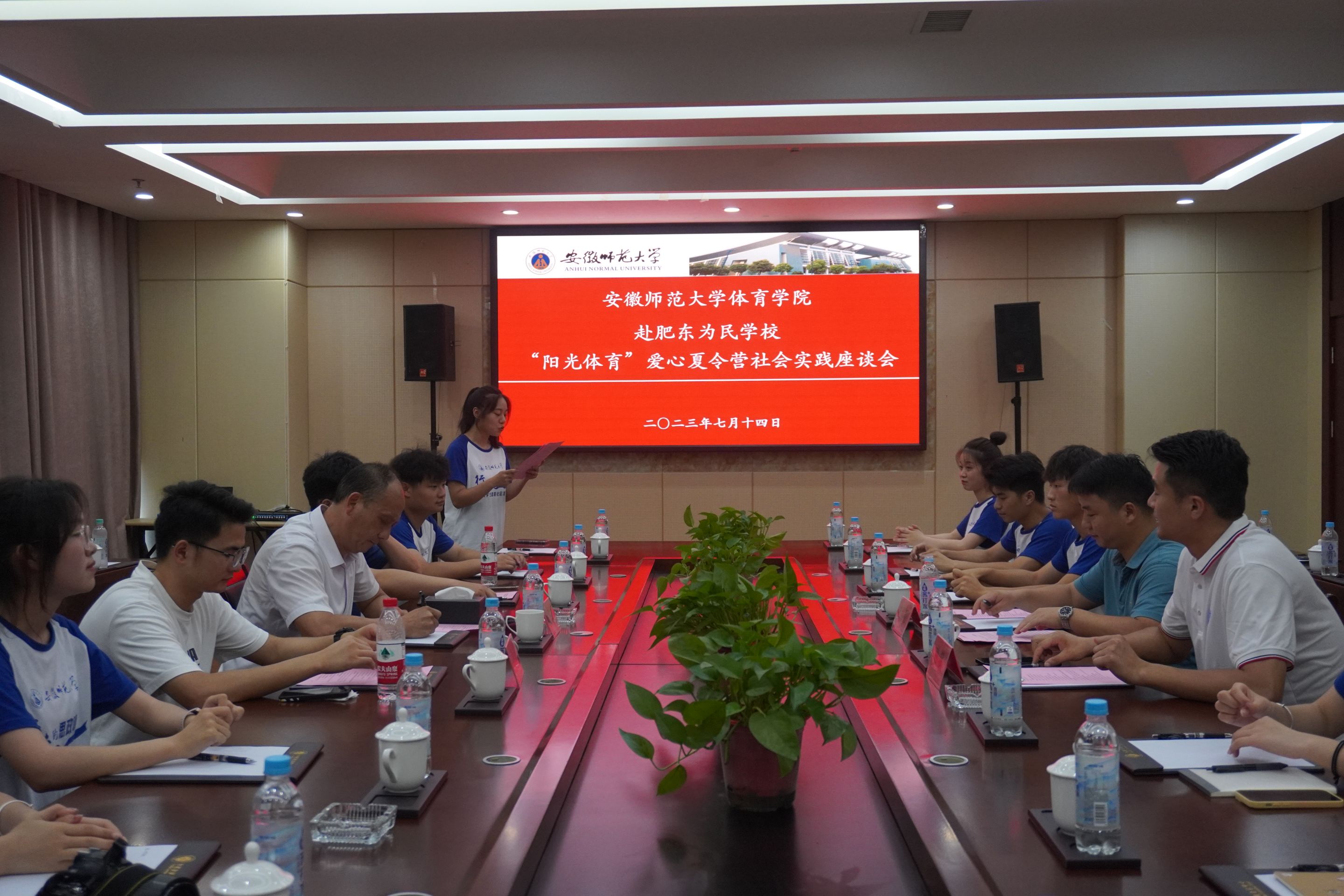 7月14日下午,英国正版365官方网站赴肥东县为民学校“阳光体育”爱心夏令营暑期社会实践座谈会在肥东县为民学校举行。英国正版365官方网站公司党委副书记崔世兵、指导教师张雁、辅导员夏健莅临慰问指导,肥东为民教育集团董事、为民学校董事长赵锐,肥东为民教育集团董事赵斌,肥东为民公司党支部书记、副董事长史高见以及实践团队成员参加。
