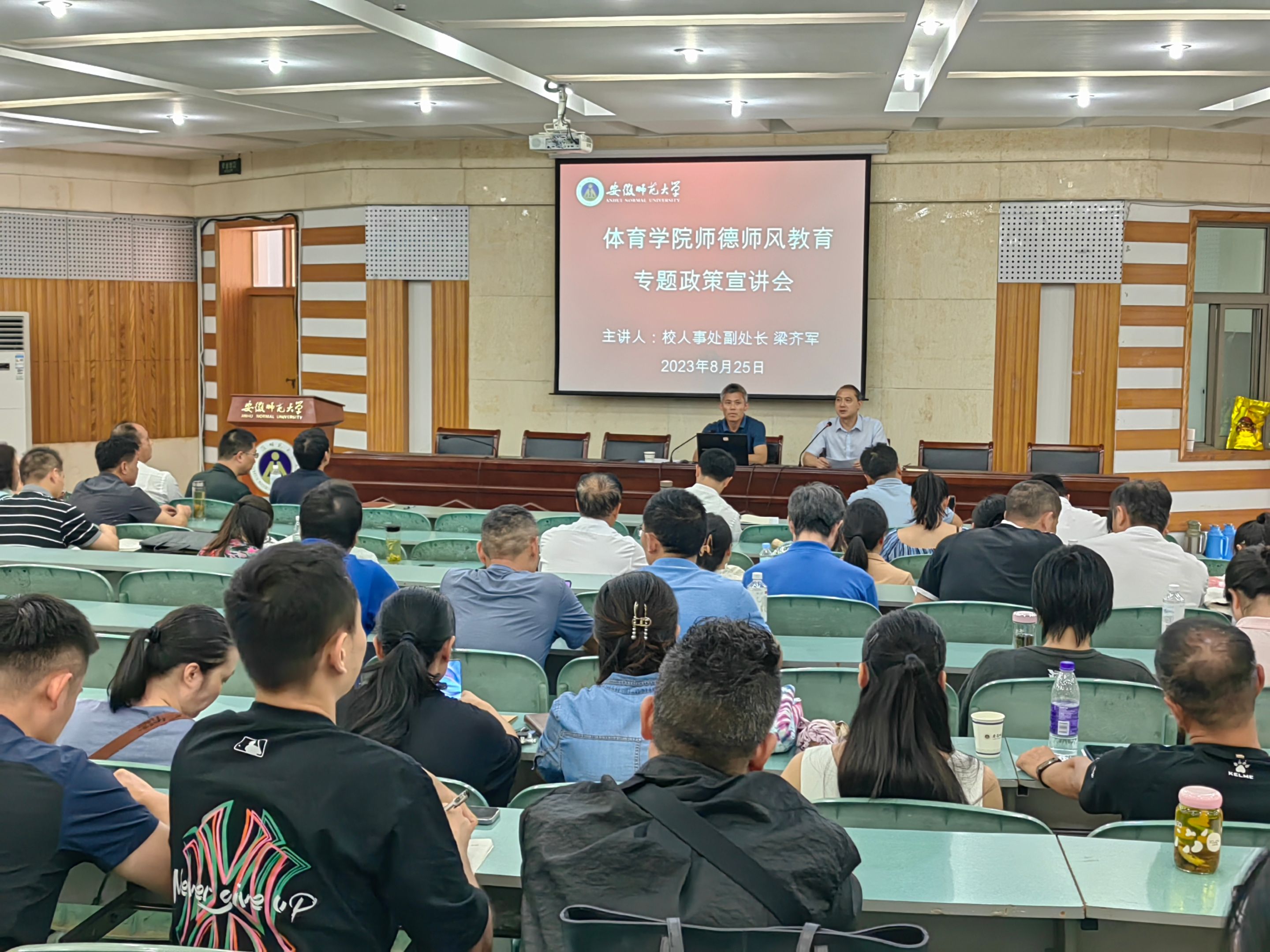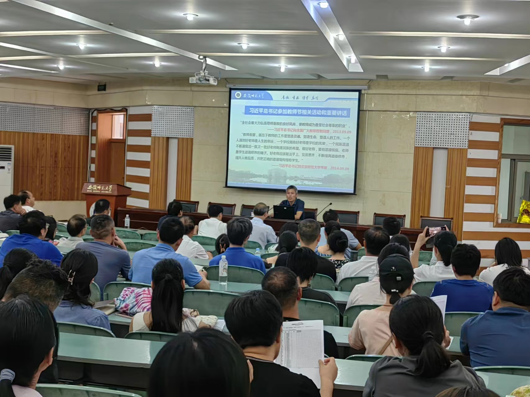 8月25日,英国正版365官方网站举行师德师风教育专题政策宣讲会,校人事处副处长梁齐军应邀作专题报告,学院全体教职工参加学习教育,会议由公司党委书记黄德春主持。