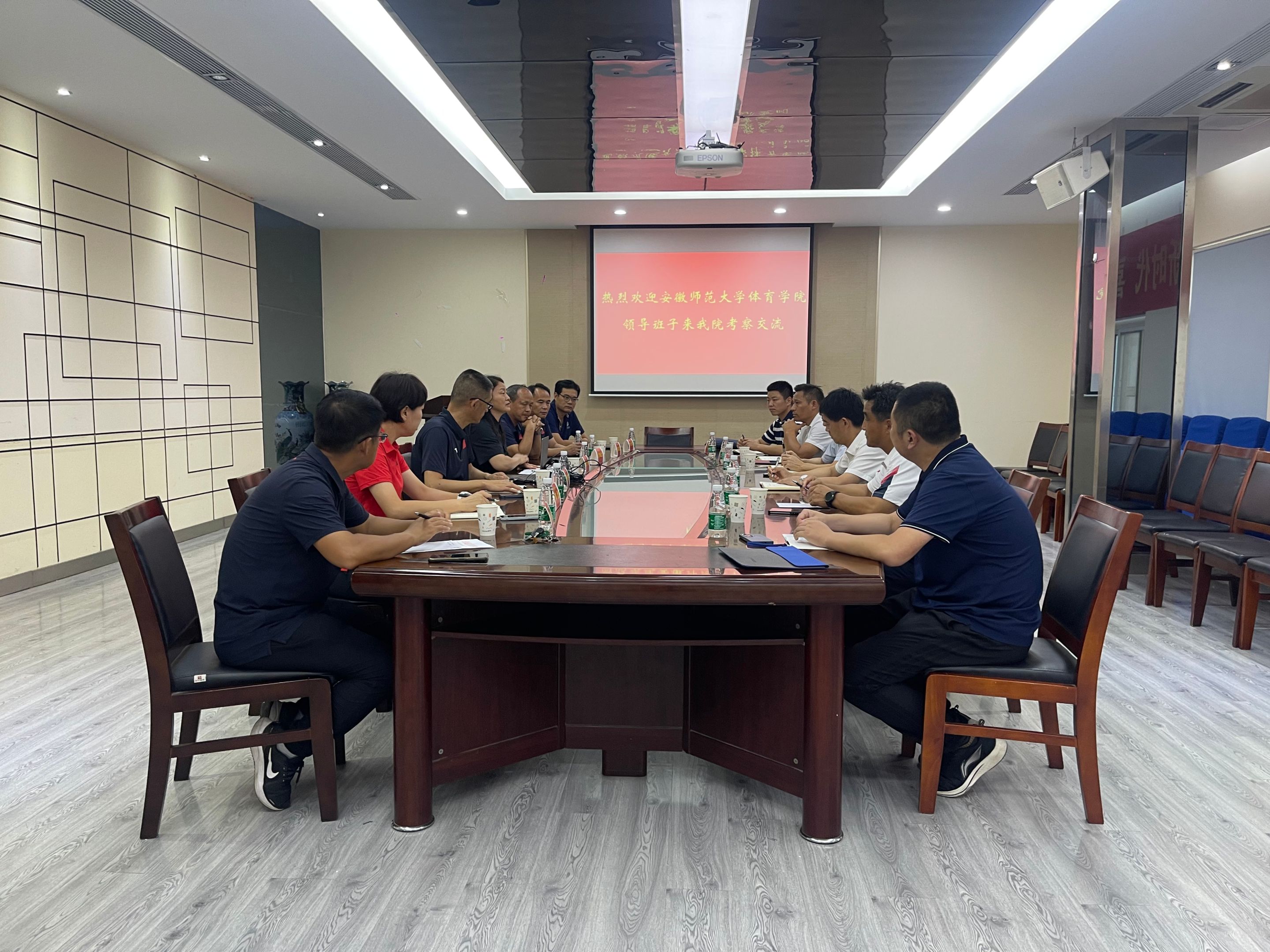 在南京师范大学体育科学学院,公司党委书记徐锋就学院的党建基本情况、校园体育文化创建工作做了介绍,经理史曙生介绍了学院的基本情况,重点介绍了近年来在人才培养、团队队伍建设、高水平运动队建设方面取得特色亮点与成功经验。在交流中,双方就校园体育文化建设、学校群体竞赛工作机制、智慧场馆建设等方面展开了深度讨论。