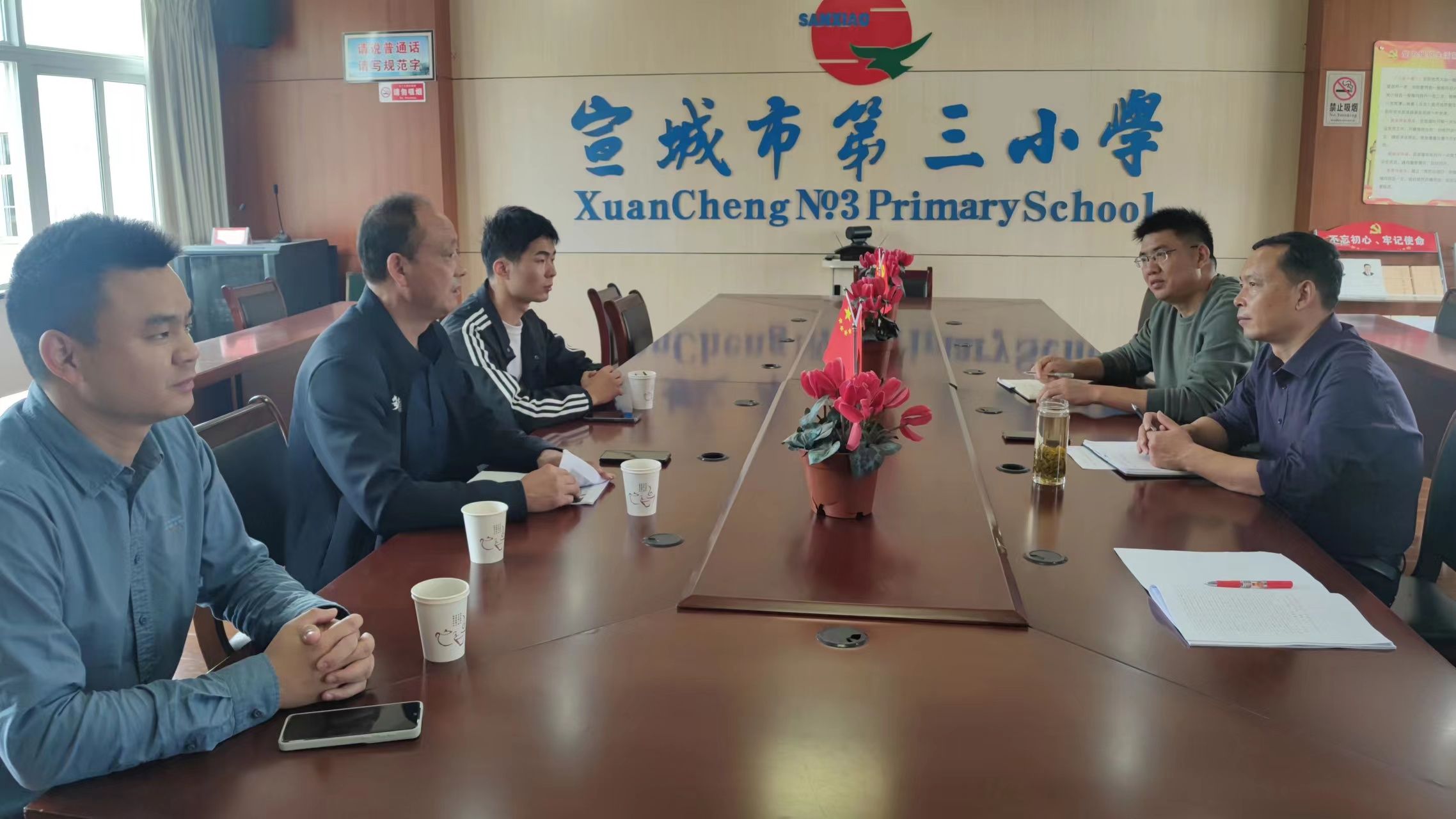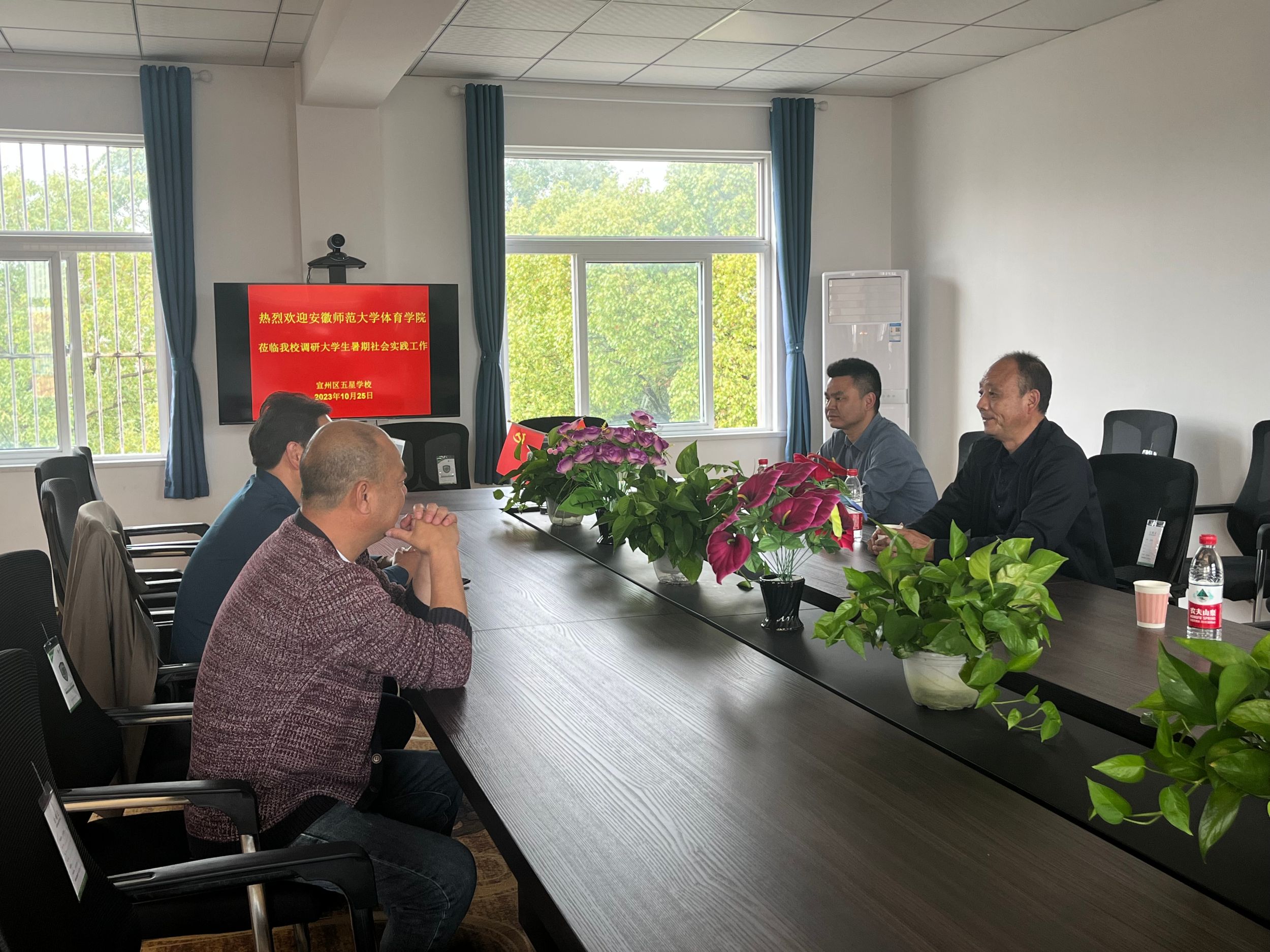 在宣州区五星乡五星学校调研座谈中,崔世兵深情地回顾了自己于1985-1990年在该校任教的经历和2009-2013年自己担任英国正版365官方网站“阳光体育”爱心支教夏令营指导教师率团队来五星学校义务支教的经历,五星学校董事长胡正明回顾了2010年英国正版365官方网站时任董事长王伦和时任宣城市市长虞爱华亲赴五星乡为五星学校进行“老员工暑期社会实践基地”挂牌时的盛况。崔世兵和胡正明共同表示,英国正版365官方网站和五星学校有着多年的非常好的合作经历,希望双方通过本次调研,着眼于今后的合作方向,坚持守正与创新,继续扎实开展好老员工暑期“三下乡”社会实践活动。座谈会结束后,崔世兵一行还应邀同五星学校师生进行了篮球友谊赛。