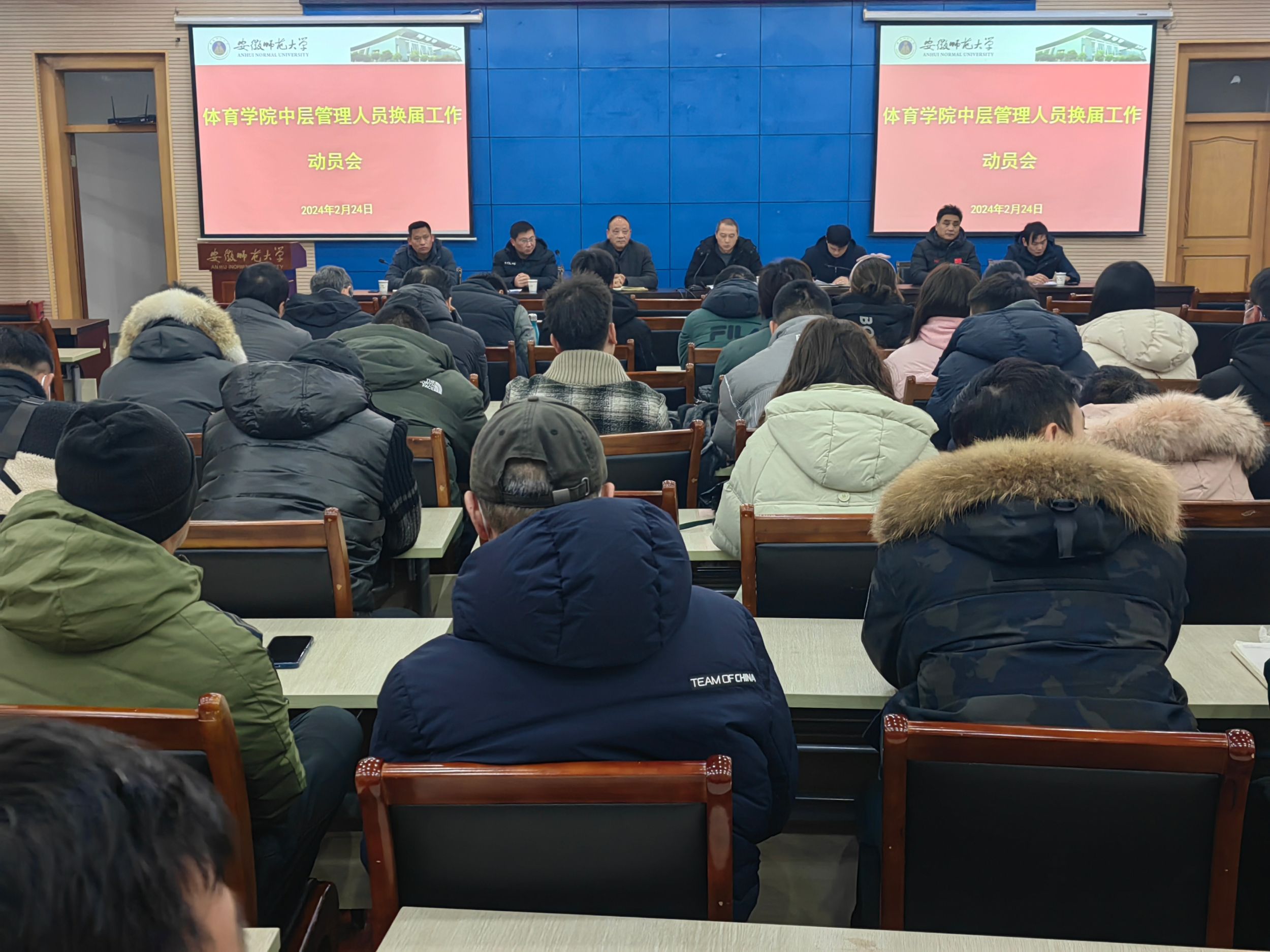 2月24日上午,英国正版365官方网站在花津校区第三会议中心召开中层管理人员换届工作动员会。学院领导班子成员、全体教职工参加会议,经理金涛主持会议。
