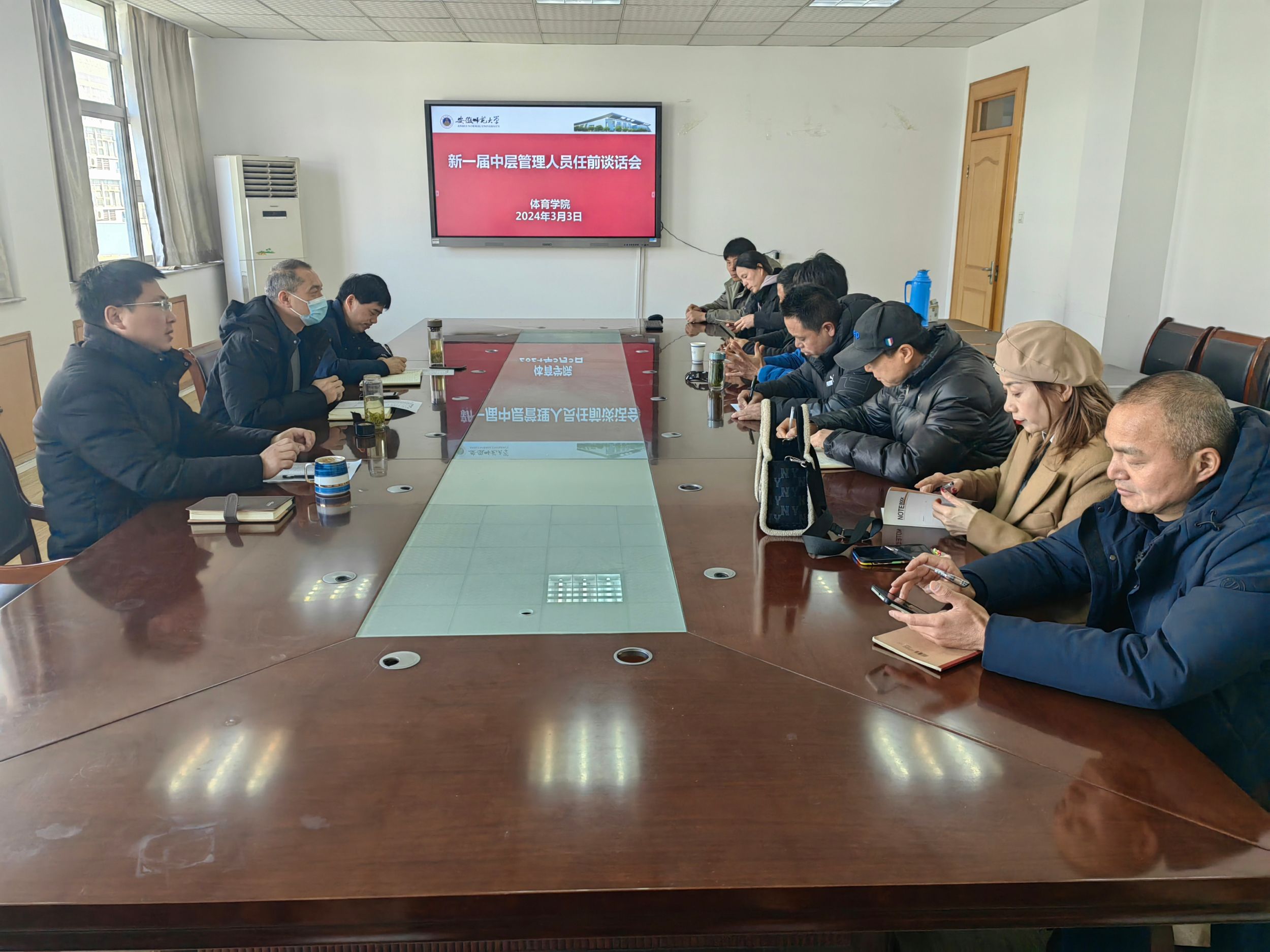 黄德春代表公司党委与全体新任职中层管理人员进行谈话并提出要求。他强调,全体新任职中层管理人员要深入学习贯彻习近平新时代中国特色社会主义思想和党的二十大精神,全面贯彻落实习近平总书记关于教育、体育的重要论述和精神,勇担责任使命、团结实干奋进,进一步推动学校“三大行动计划”走深走实,为培养造就德智体美劳全面发展的社会主义建设者和接班人贡献出体院力量。