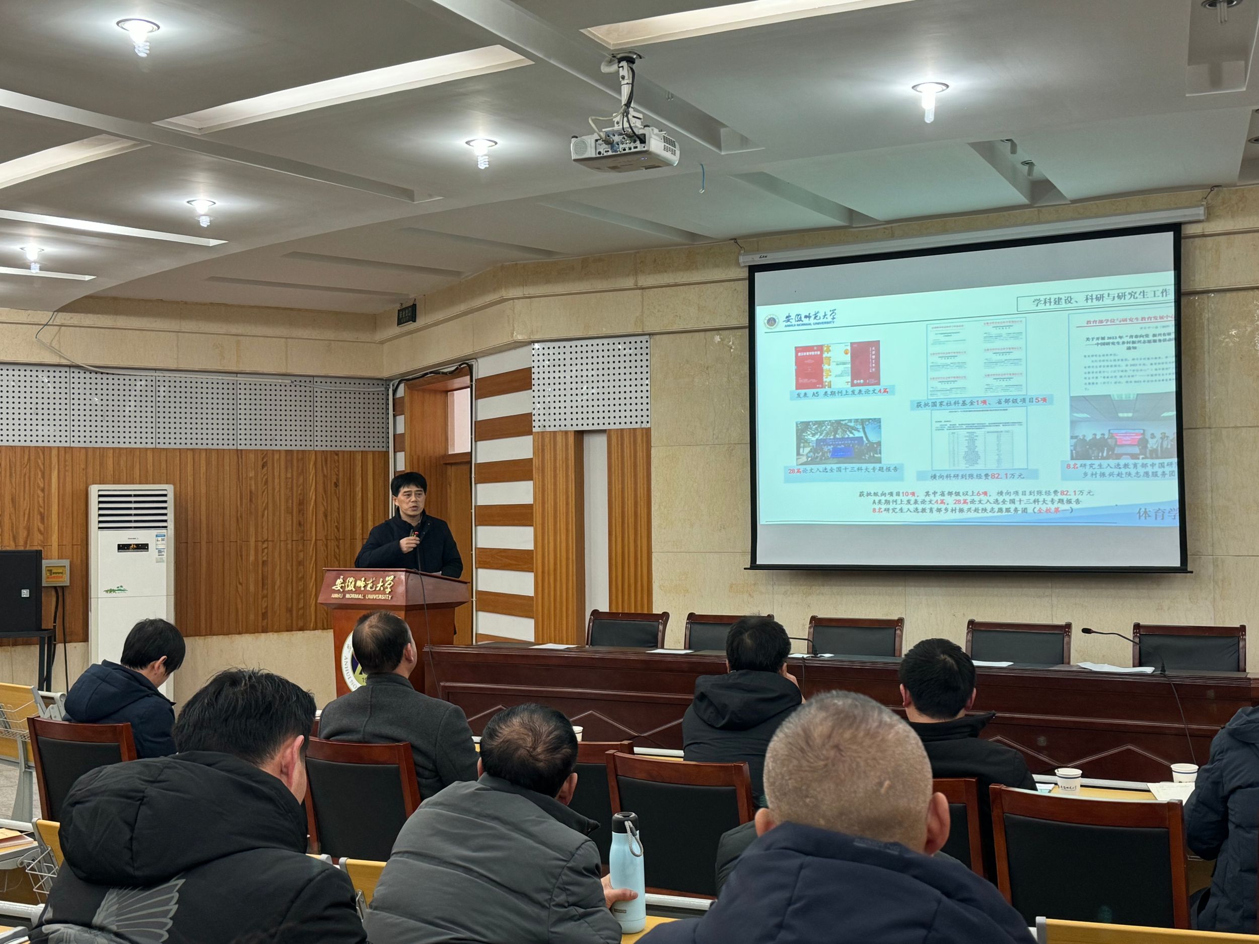 经理金涛代表学院班子作2023年度工作述职,从党建、团队队伍建设、人才培养、教学训练、学科科研、联系我们等方面情况展开汇报,既呈现了一年来学院办学的特色亮点及取得的成绩,也客观分析了工作中存在的问题和不足,提出了整改思路、举措、努力方向和今年的目标任务。随后,学院领导班子成员就2023年度工作进行现场述职,与会人员按要求开展民主测评。