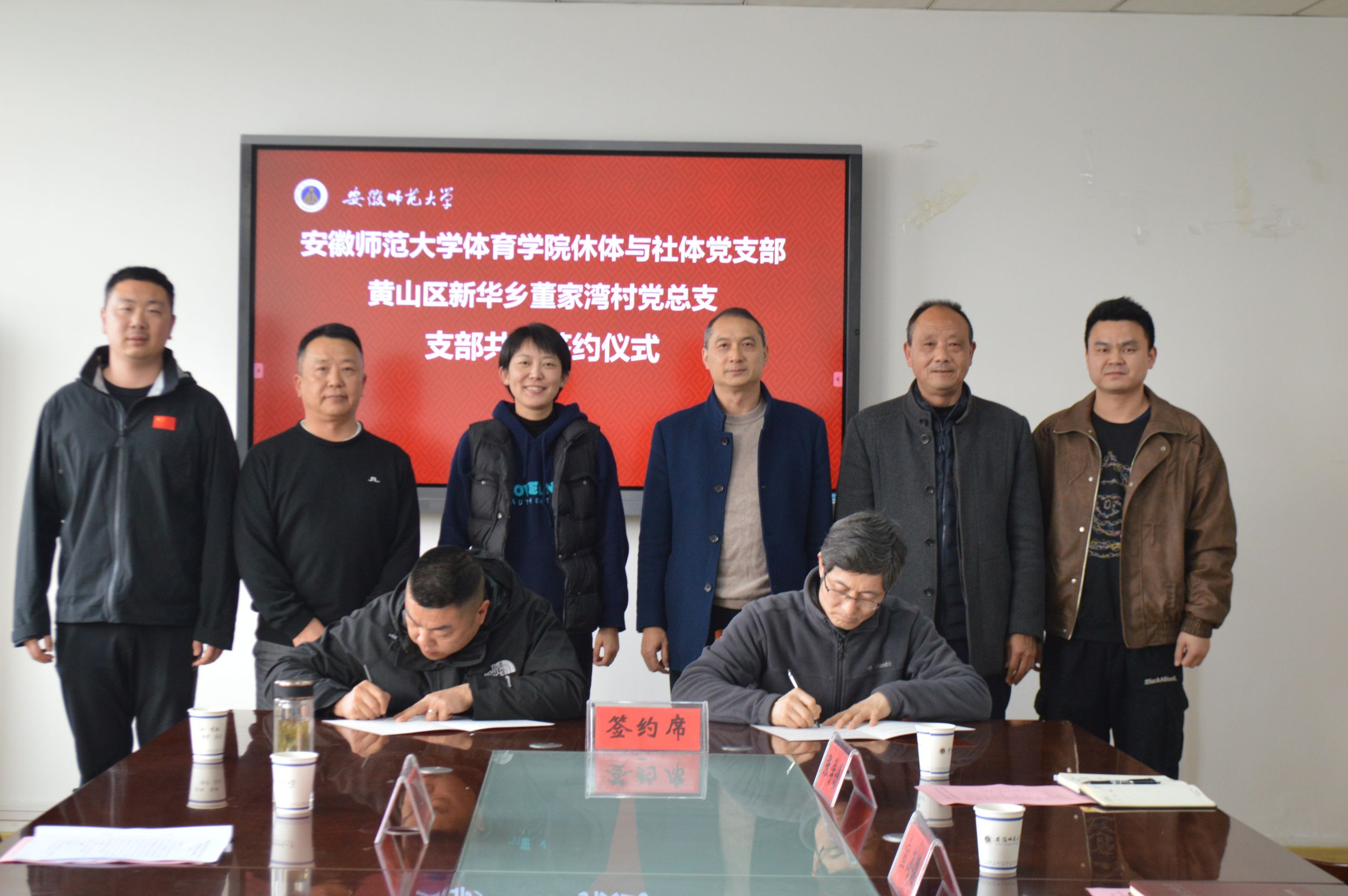 3月15日下午,黄山区新华乡董家湾村党总支与公司休体与社体党支部在英国正版365官方网站三楼会议室举行结对共建签约仪式,黄山区新华乡乡长聂力、董家湾村党总支书记陈旻祥、黄山区亿利工贸有限公司董事长余锦东,公司党委副书记崔世兵、休体与社体党支部书记宣海德、办公室副主任(兼职)徐梦涛、党委秘书(兼职)张学谦参加了此次签约仪式,会议由公司党委书记黄德春主持。