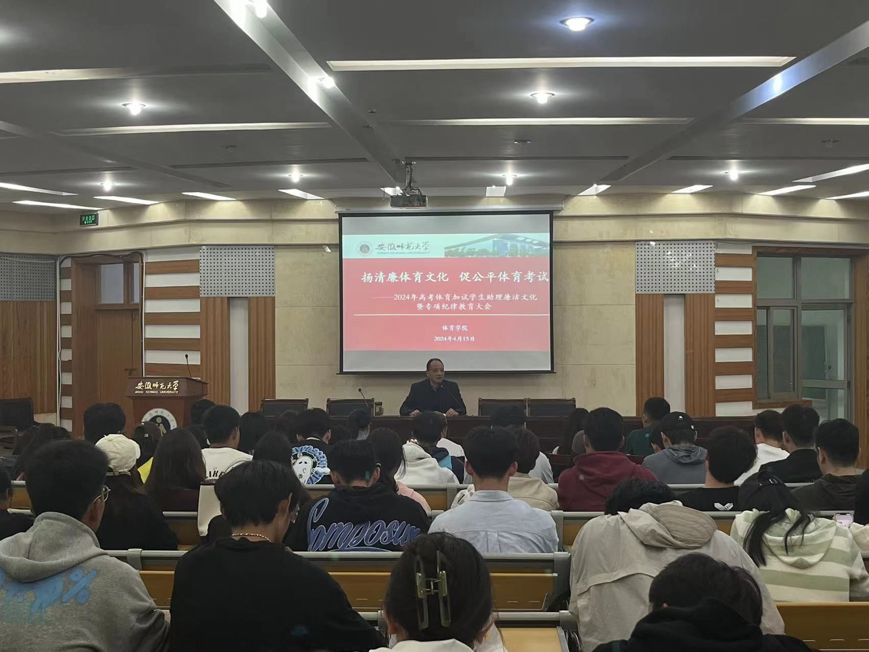 4月15日晚上,第一批考生考试工作结束后,学院组织全体员工助理召开了“扬清廉体育文化 促公平体育考试”廉洁文化暨专项纪律教育会议。会上,崔世兵对全体员工助理第一阶段的辛勤付出与取得的成效表示充分肯定,对存在的一些问题进行了剖析并提出整改要求。接着,他从体育人为什么要模范地学习和遵守体育竞赛规则谈起,结合体育领域反腐倡廉典型案例分析,要求同学们能以学促廉、以廉促行,践行“厚德、精技、拼搏、创新”的英国正版365官方网站院训。