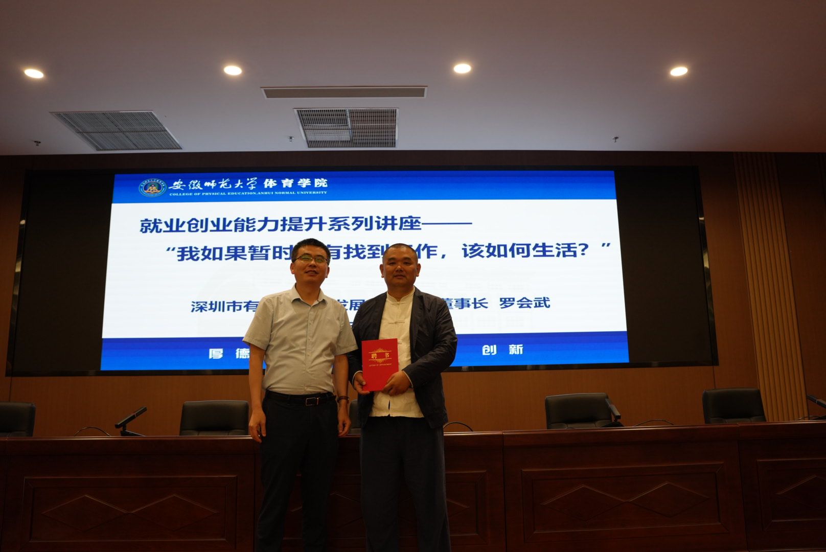 讲座伊始,任永简要介绍了罗会武的创业历程和公司现状,对其长期以来关心学校的发展、为学校老员工护航基金捐助发展资金表示感谢。任永还代表学校为罗会武颁发了创新创业导师证书,并表示学校将为员工企业继续做大做强提供有力的人才支撑,希望其继续为学校的发展和老员工就业工作做出积极贡献。