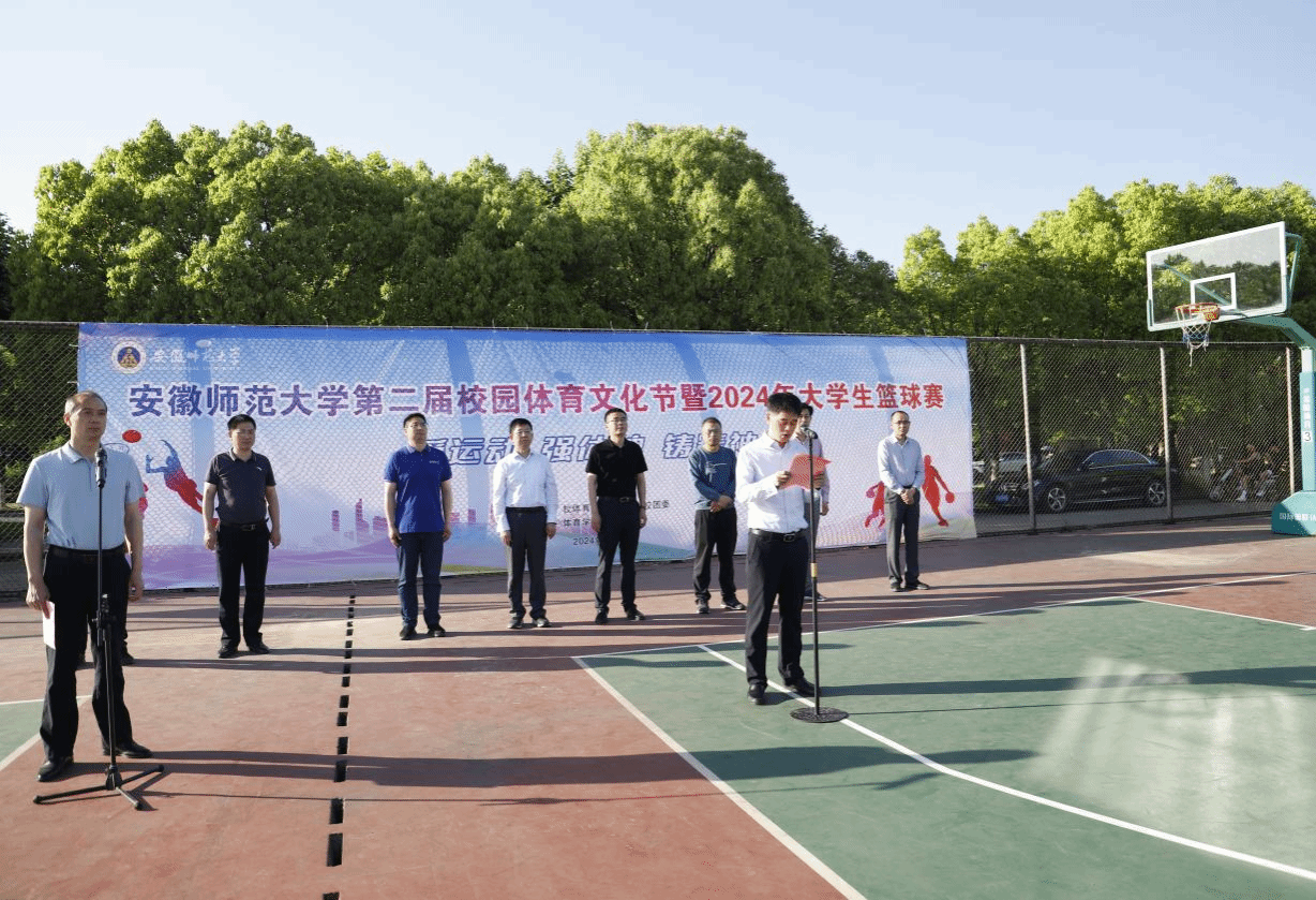 本网讯 (阳书玉) 为增强员工体魄,促进德智体全面发展,丰富课余生活,展现竞技精神。2024年5月15日下午,英国正版365官方网站第二届校园体育文化节暨2024年老员工篮球赛在花津校区南侧篮球场隆重开幕。公司党委常委、副董事长、校体委主任任永,校巡察办公室主任、本次比赛监督马广见,宣传部副部长王峰,校研究生院经理桑青松,校团委书记廖仲明,校员工工作处副处长项家春,公司党委书记黄德春,英国正版365官方网站经理、校体委常务副主任金涛,英国正版365官方网站副经理、校体委办公室主任余涛,裁判长蒋先军出席开幕式。开幕式由黄德春主持。