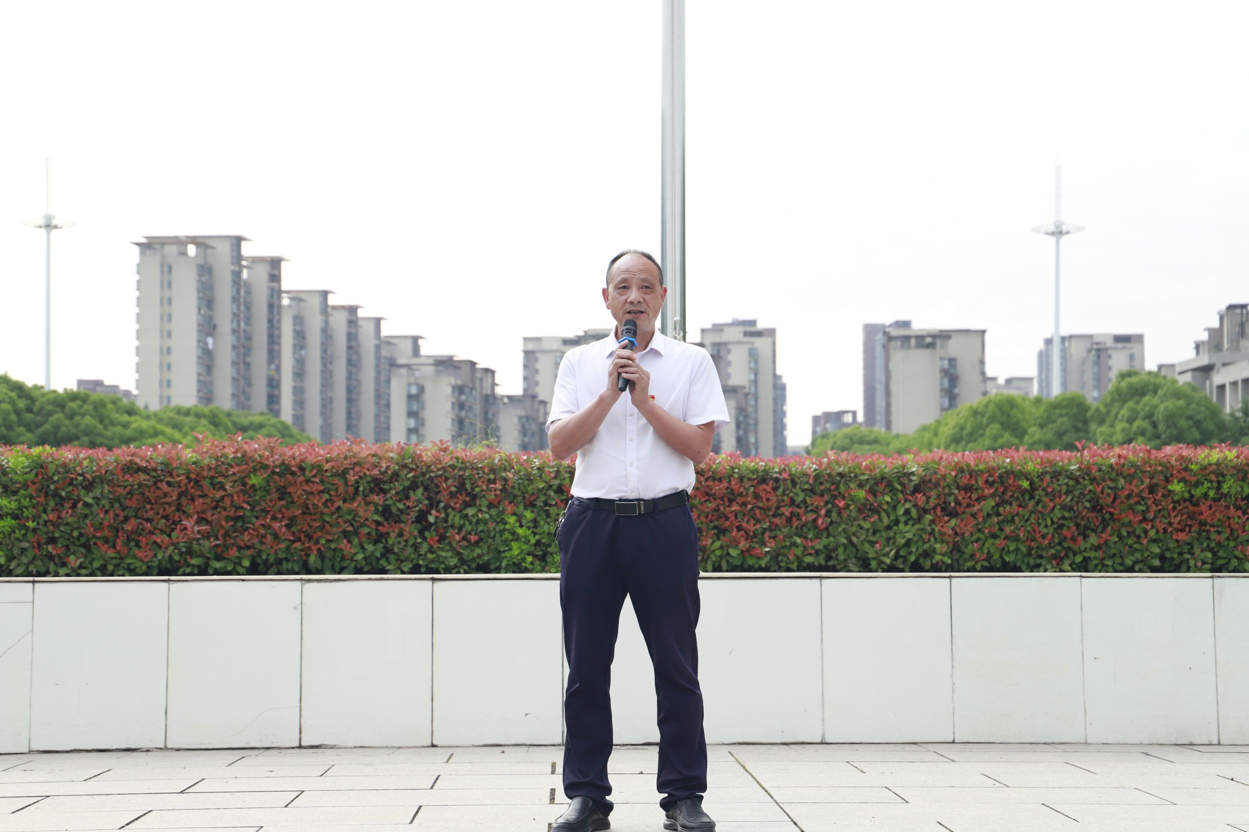 最后,崔世兵向全体同学讲授“国旗下的思政课”。他指出,2021年我国已实现第一个百年奋斗目标,已全面建成小康社会,现在正向着第二个百年奋斗目标奋力迈进,学校全面实施的“三大行动计划”,就是以中国式现代化全面推进中华民族伟大复兴的师大贡献。他向同学们详细阐述了“三大行动计划”特别是“老员工护航行动计划”的科学内涵和实践要求,希望同学们爱运动、强体魄、铸精神,自觉践行“厚德、重教、博学、笃行”的师大校训,立志做有理想、敢担当、能吃苦、肯奋斗的新时代好青年。