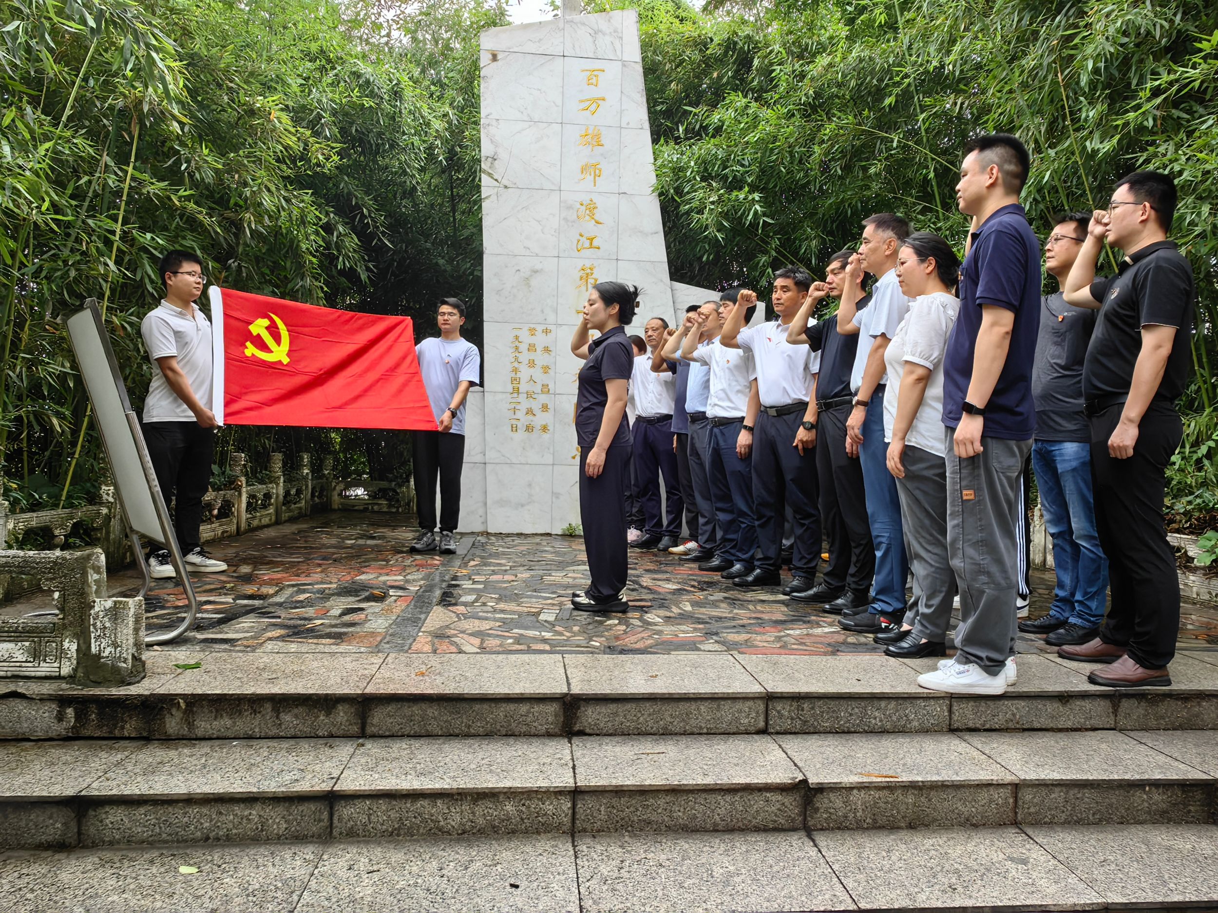 在渡江战役第一船登陆点纪念碑前,全体党员列队而立,高举右手,面对鲜红的党旗重温入党誓词,誓言嘹亮,字字铿锵。大家纷纷表示,将以此次参观学习为契机,认真学习《中国共产党纪律处分条例》,更加自觉学纪、知纪、明纪、守纪,进一步坚定理想信念,为建设体育强国贡献力量。