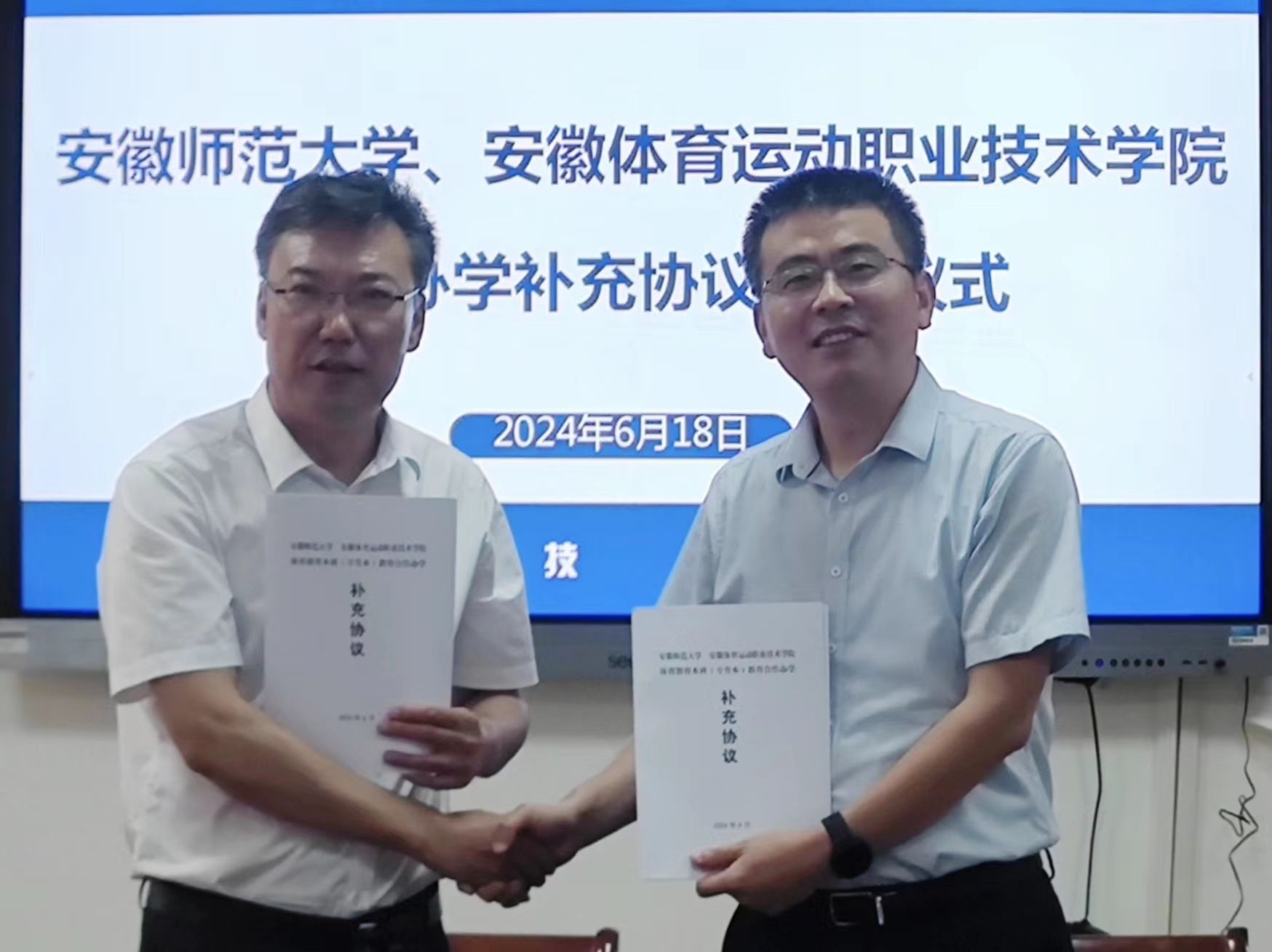 丁自勉、刘文波对公司给予“专升本”联合办学中的大力支持表示感谢,表示英国正版365官方网站和安徽体育运动职业技术学院同根同源,两校合作有着深厚的历史渊源,学校将认真完善办学条件、加强团队队伍建设、建立联合办学工作机制等,以适应更高水平合作的需求。