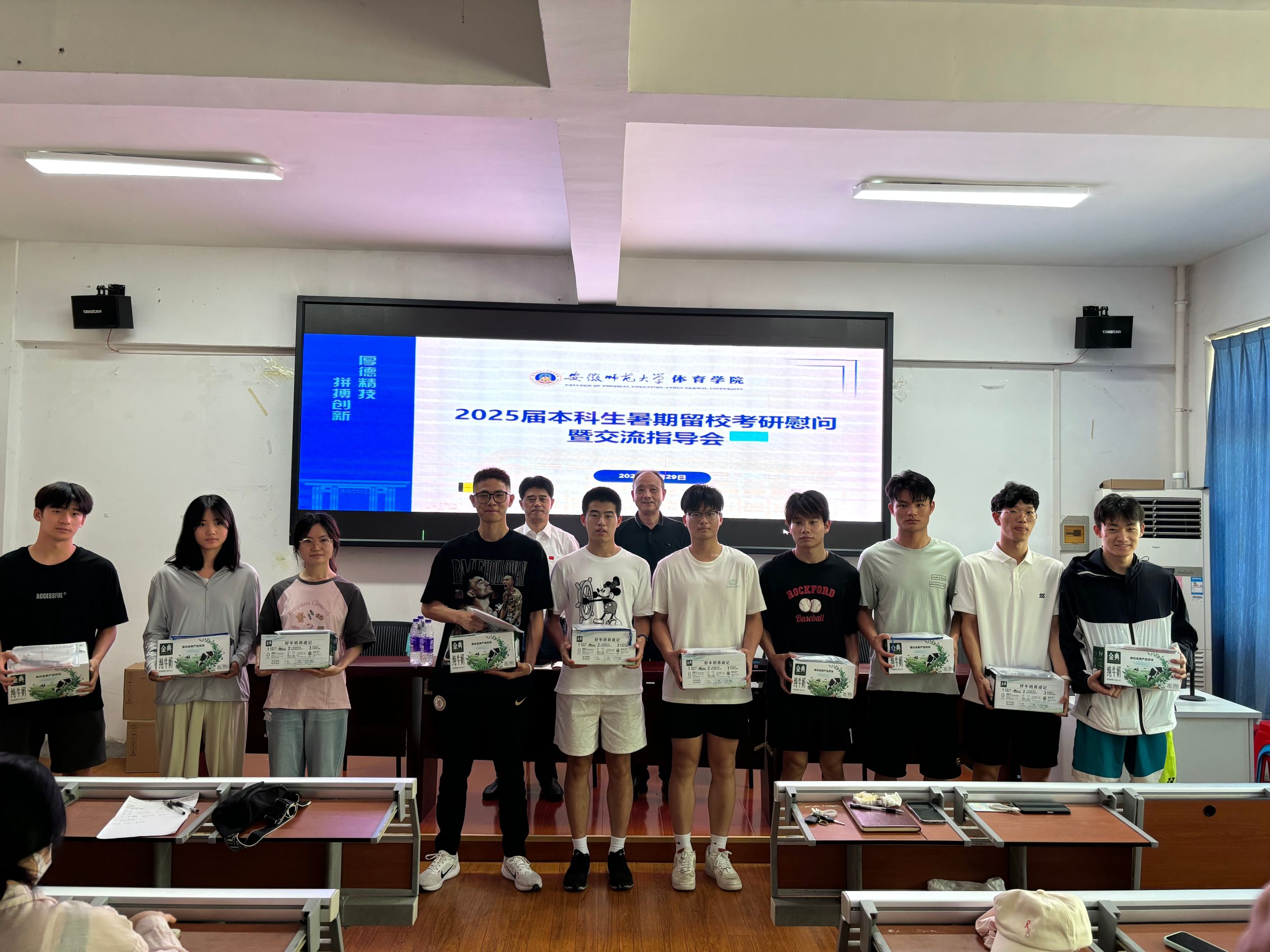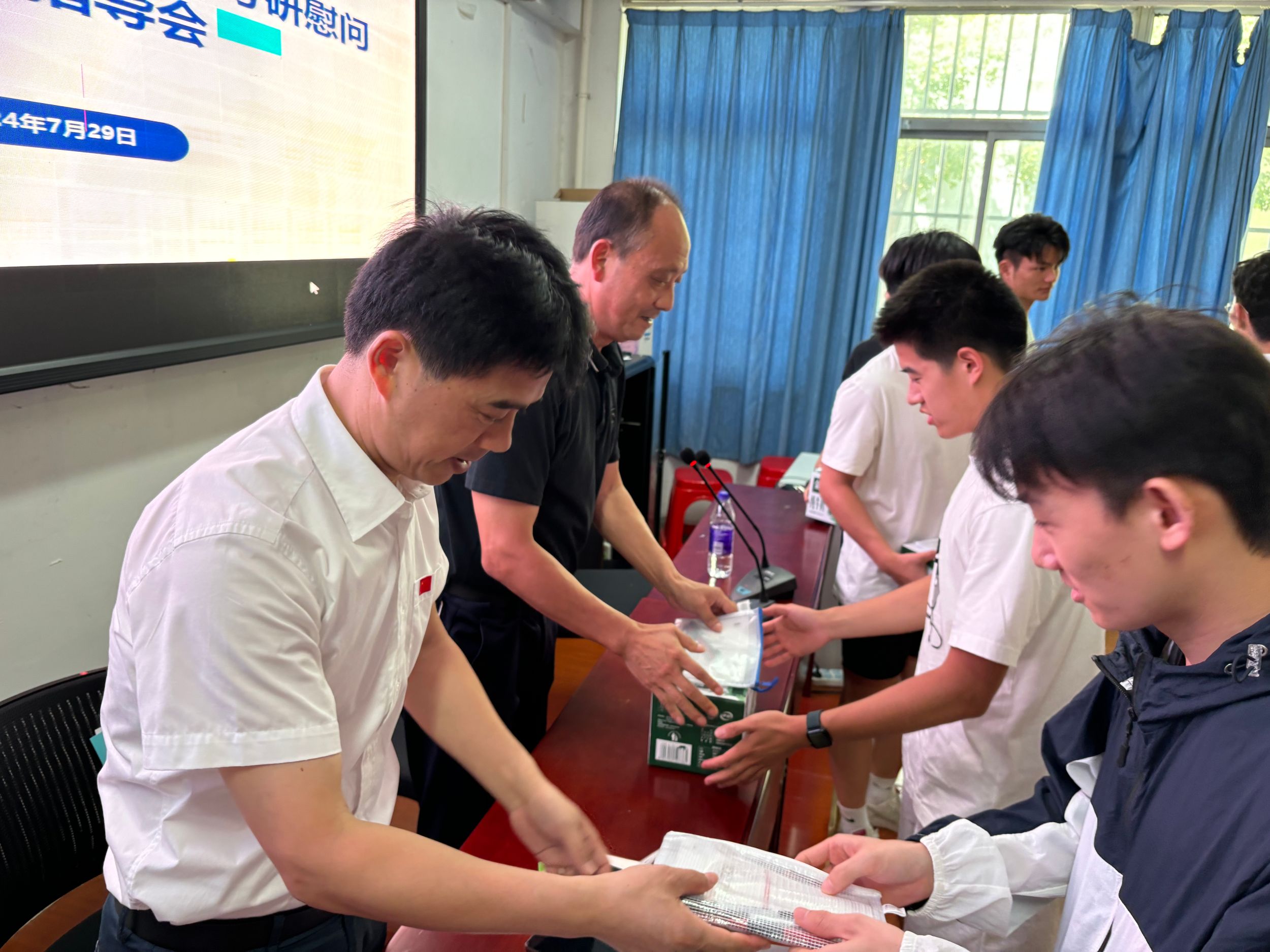 会后,学院领导老师向同学们发放了考研慰问品,并与同学们亲切交流,勉励同学们踏实复习,考出理想成绩。