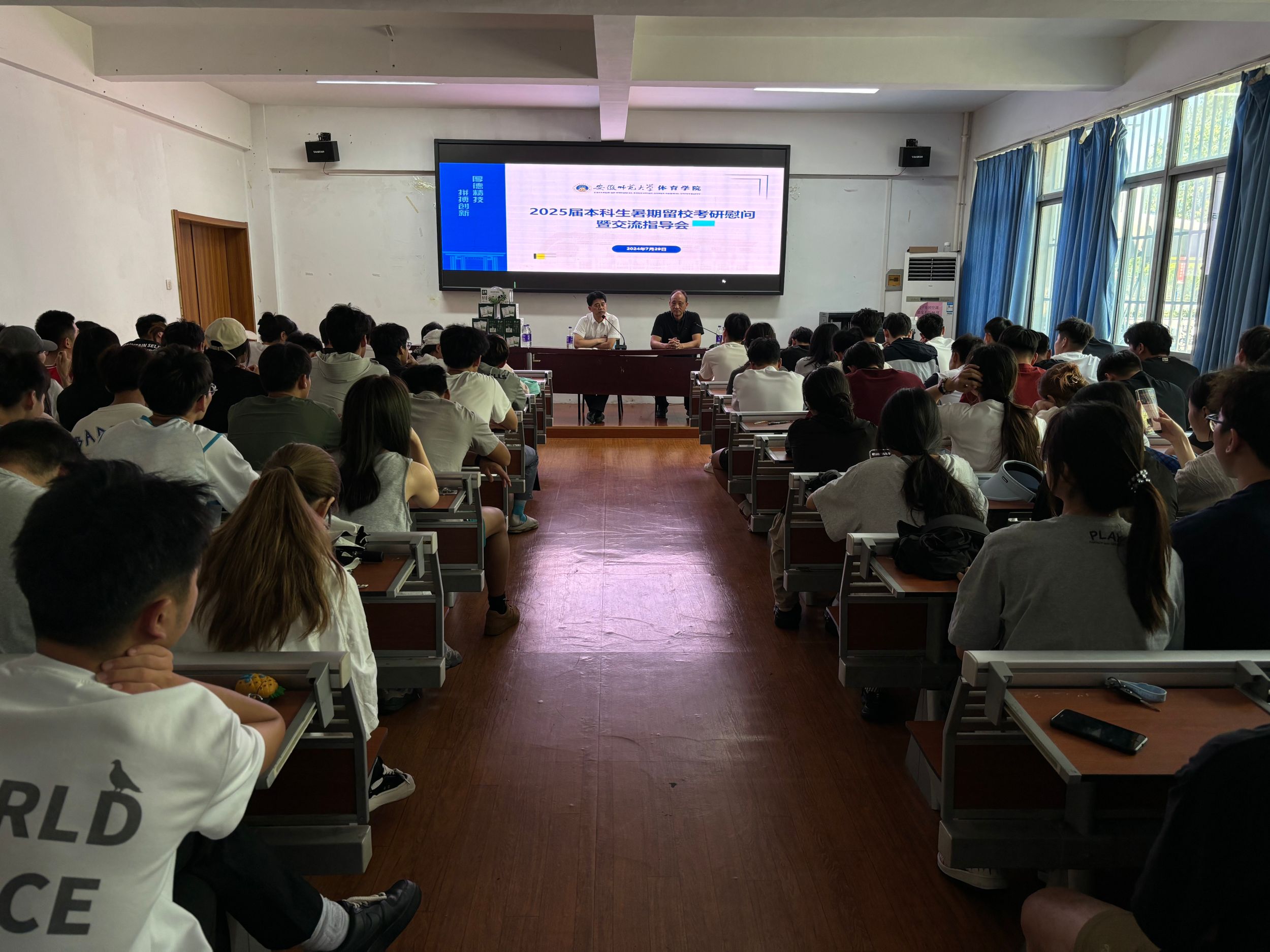 会上,崔世兵通报了近年来体院学子考研情况,通过详实的数据阐述了暑期留校备战考研的必要性和实效性,表示学院会尽最大努力为同学们成长、成才保驾护航,嘱咐同学们要结合自身实际,科学制定目标,把控学习节奏,做到劳逸结合。他还就暑期留校期间各项纪律提出明确要求,对消防安全、交通安全、食品安全、防溺水等方面作出提醒,引导留校员工牢固树立安全第一的理念。