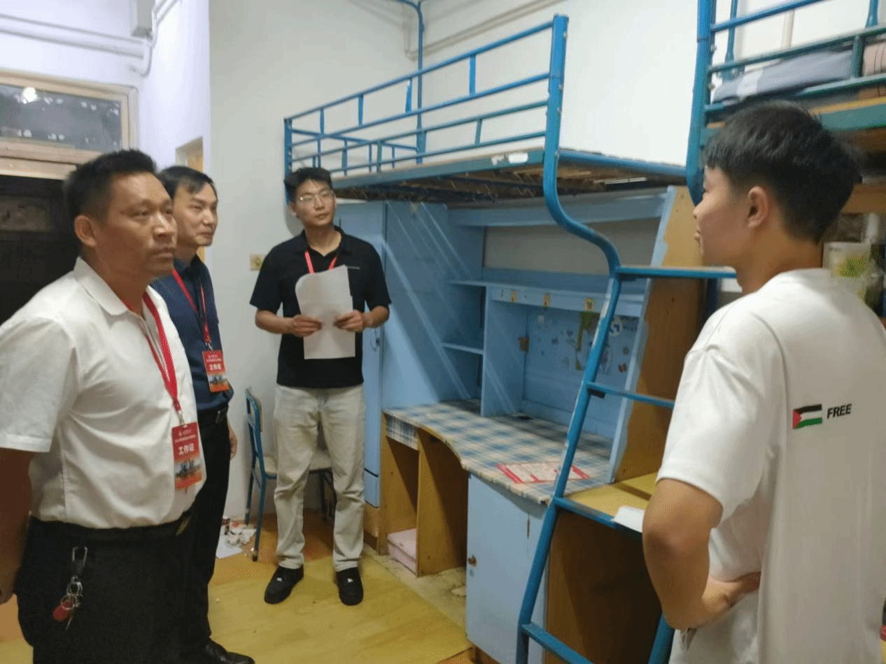 走访寝室,满载温情。迎新当天,院领导和老师深入新生寝室,与新生和家长亲切交谈,介绍学校情况,为员工和家长答疑解惑,帮助员工解决生活上的困难,让家长放心,让员工安心。