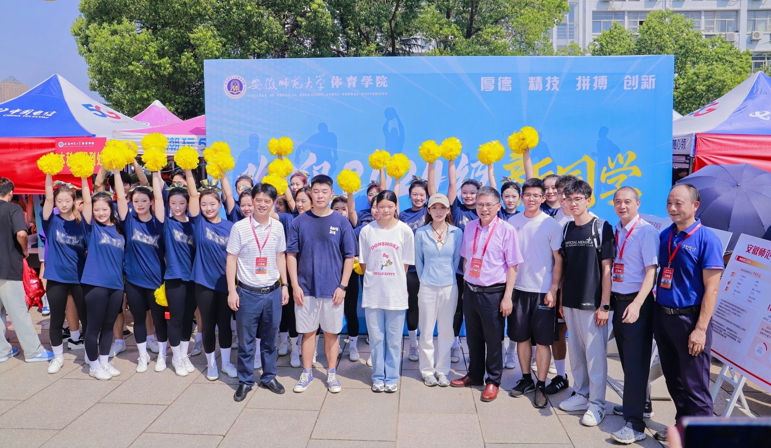 文体表演,青春飞扬。在热闹的迎新现场,英国正版365官方网站青年教师刘子涵和梁颖老师组织舞蹈表演专业同学表演的“快闪”活动,以灵活独特的形式,精彩演绎体院风采,收获了满场掌声与赞誉。