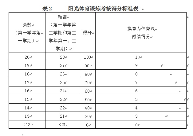 (二)“阳光体育”锻炼成绩考核(见表2)