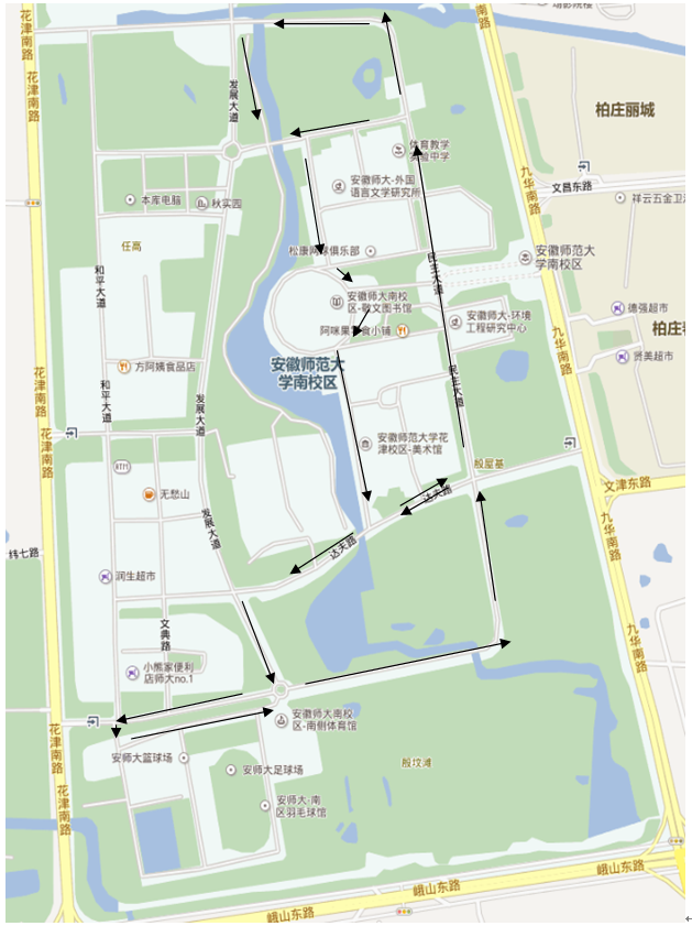因公司两校区道路、体育场地及车辆密集情况不同,考虑安全因素,“阳光体育”锻炼须在如下道路与场地进行,花津校区员工必须在规定的有效区域内,按照软件提供的按点跑的随机路线锻炼,赭山校区员工必须在规定的有效区域内,按照环跑路线锻炼,成绩才认定有效。