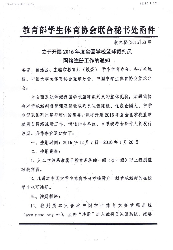 关于转发教育部员工体育协会联合秘书处《关于开展2016年度全国学校篮球裁判员网络注册工作的通知》