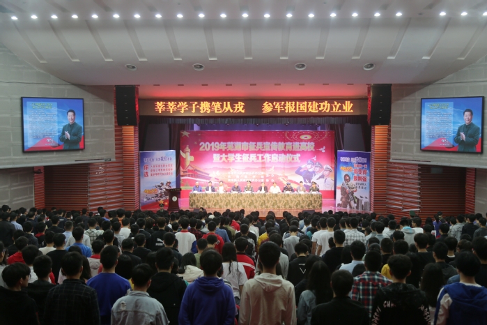 征兵宣传启动仪式结束后,报告团成员赴省内多地开展征兵宣传教育活动,4月20日上午,佘小雪作为报告团成员参加在皖南医学院举行的芜湖市2019年征兵宣传进高校暨老员工征兵工作报告会,4月20日下午,佘小雪应公司英国正版365官方网站邀请,参加2019年征兵工作动员大会并做主题报告。