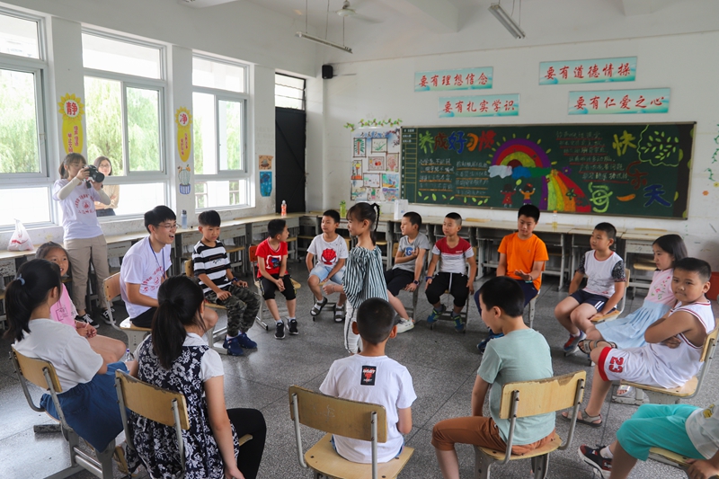 开营仪式的结束后,志愿者们组织营员们有序进入将要进行课程的教学场所,他们为孩子们讲解课程的安排与注意事项,孩子们美好夏令营的旅程就此展开。开营仪式结束了,而二十位来自安徽师大的志愿者奉献甘棠的路却刚刚开始,他们将以饱满的热情给甘棠中心学校的孩子们带来更多的快乐。