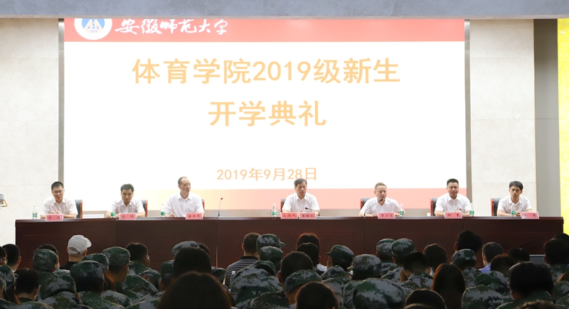 开学典礼在庄严的国歌声中拉开序幕。2019级体育学类专业胡倩倩同学作为本科新生代表发言,她承诺会在大学学习中努力掌握专业知识,提高实践技能,提升综合素质。2019级研究生新生代表方星娥则表示作为师大新成员的她们将在师大“厚德、重教、博学、笃行”校训的指引下,开拓进取,勇于创新,铸造属于体育人的美好明天。