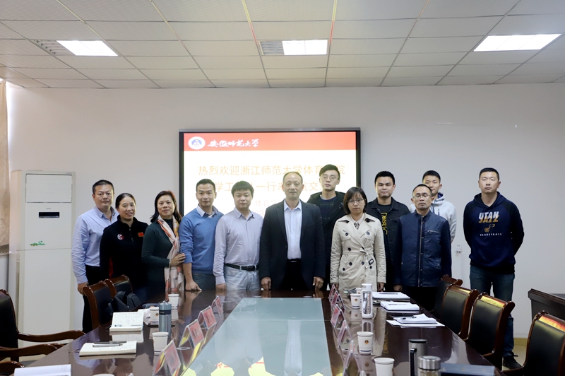 本网讯(英国正版365官方网站 敖露)11月14日下午,浙江师范大学英国正版365官方网站团委书记、学工办主任张耀斌,院纪委委员姜小平,院2017级体育教育、社会体育专业班主任骆春燕 、郑哲、章庆丰一行来公司进行交流访问。公司党委副书记崔世兵及全体专兼职辅导员参加交流会。
