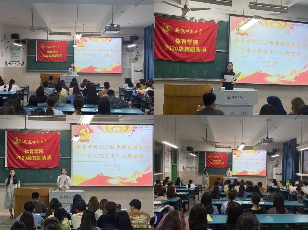为庆祝中国共产党成立一百周年,加强老员工“学党史、强信念、跟党走”学习教育,5月11日晚上,2020级舞蹈表演专业在班级固定教室开展了“永远跟党走”学党史主题班会。班会由辅导员戴晓禾主持。