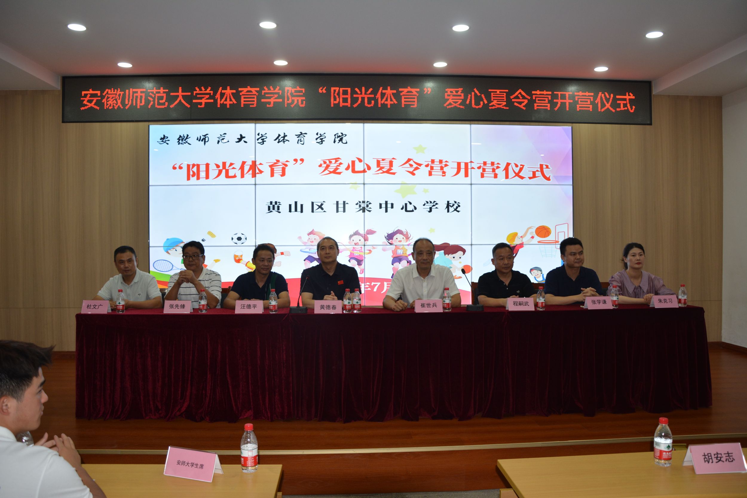 本网讯(英国正版365官方网站)英国正版365官方网站赴黄山区甘棠中心学校“阳光体育”爱心夏令营暑期社会实践团队于7月8日下午举行开营仪式。公司党委书记黄德春、公司党委副书记崔世兵,黄山区教育工委委员、副局长汪德平,黄山区教育工委委员、教研室主任、甘棠中心公司党总支书记程嗣武,黄山区甘棠中心学校董事长张先锋等领导和夏令营师生参加开营仪式。