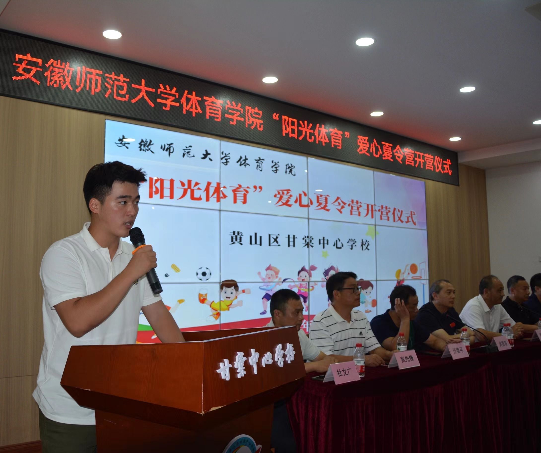 开营仪式上,张先锋介绍了甘棠中心学校办学情况以及学校为老员工暑期社会实践活动提供的教学和后勤保障情况。黄德春在总结讲话中对当地政府、学校和家长对英国正版365官方网站老员工暑期社会实践活动的大力支持表示感谢,他阐述了“阳光体育”爱心夏令营创办历程和深远意义,强调了体育精神在青少年成长中的重要作用,希望夏令营团队全体成员在实践中真正“受教育、长才干、作贡献、树形象”,为乡村振兴和基础教育振兴贡献力量。