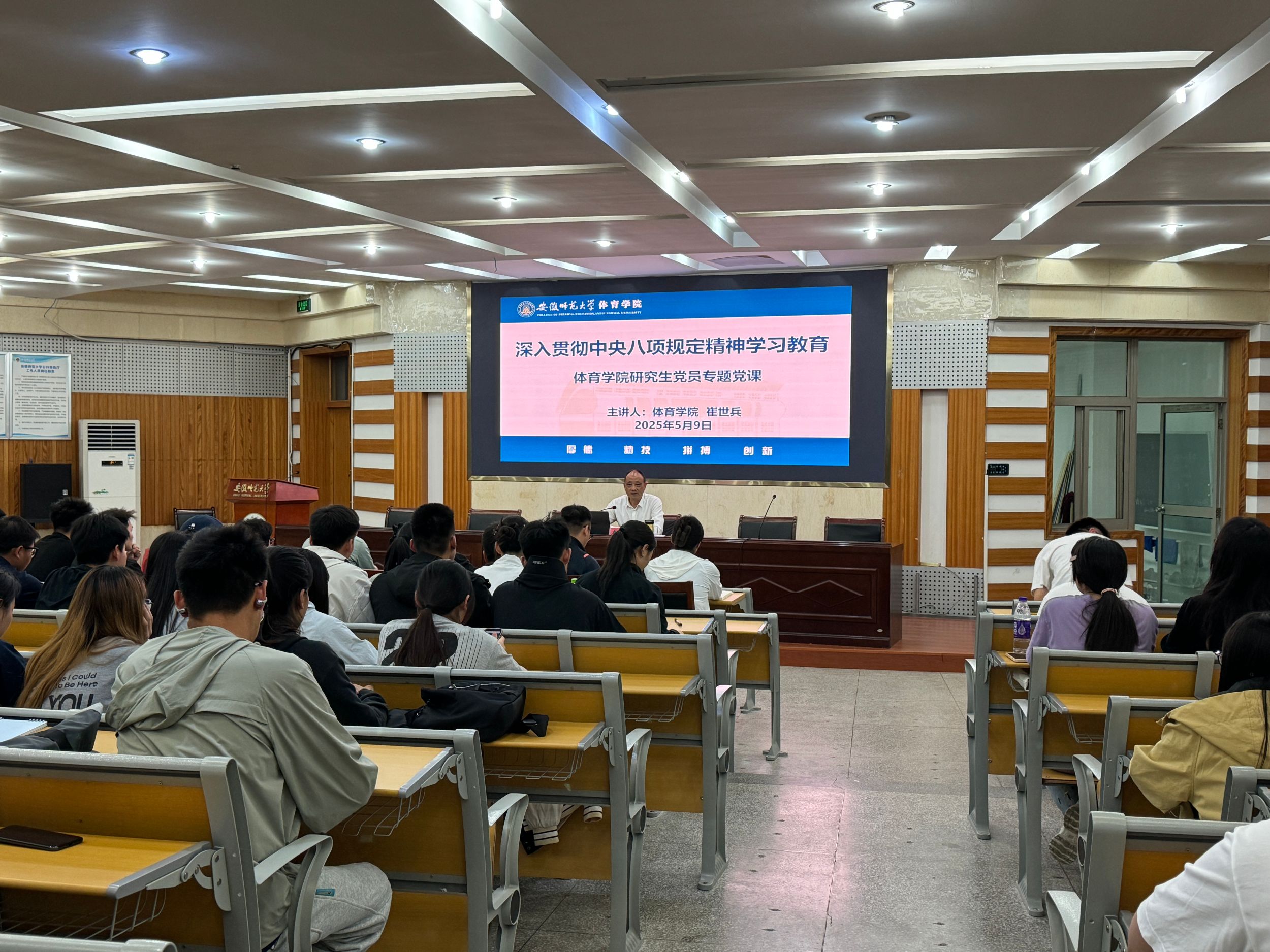 本网讯(英国正版365官方网站)2025年5月9日,英国正版365官方网站研究生第一、第二、第三党支部在8号楼副2楼报告厅开展“深入贯彻中央八项规定精神学习教育”专题党课。研究生党支部书记吴佳芳、孙永梅、蒋亚斌及全体研究生党员(含预备党员)参加会议。专题党课由公司党委副书记崔世兵主讲。