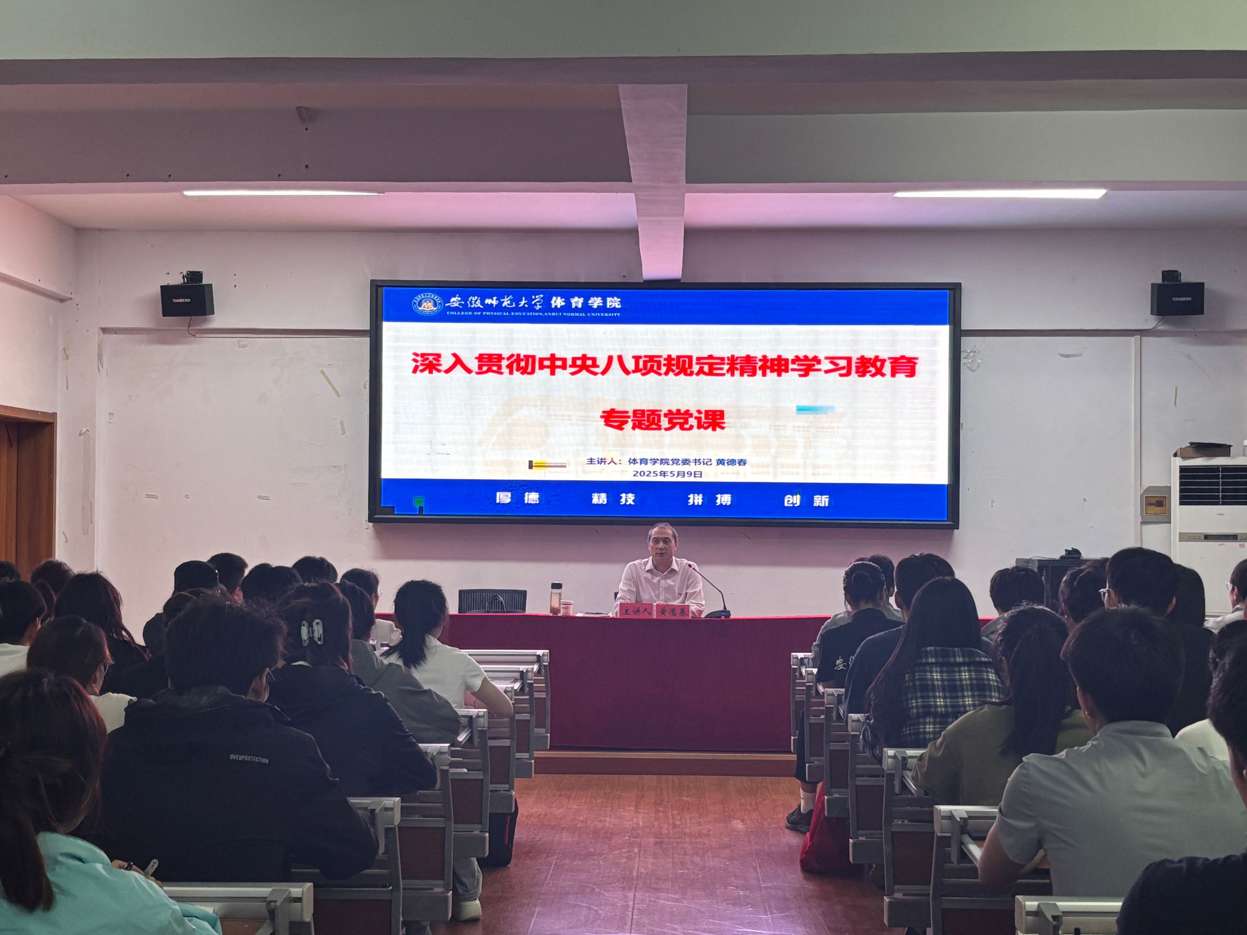 2025年5月9日晚,英国正版365官方网站本科生党支部在北侧田径场多媒体教室开展深入贯彻中央八项规定精神学习教育专题党课,本科生党支部书记及全体本科生党员参加会议,党课由公司党委书记黄德春主讲。