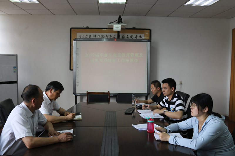 汪暠首先原文传达了《关于做好2019届毕业生党员教育管理及组织关系转移工作的通知》(组织部〔2019〕22号),详细解读了毕业生党员组织关系转接的重要事项,并对毕业季毕业班党员教育管理等工作进行布置。