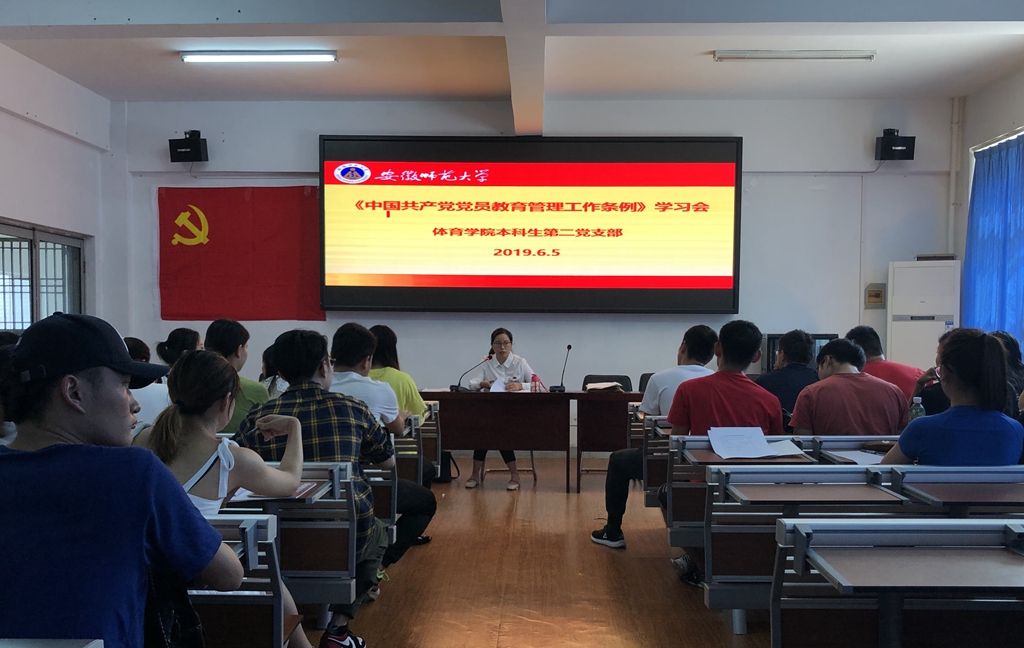 6月5日下午,英国正版365官方网站本科生第二党支部在校北侧田径场多媒体教室召开支部大会暨《中国共产党党员教育管理工作条例》专题学习会。会上,党支部书记李景玲带领全体党员同学学习了《条例》的内容,重点强调了党员教育基本任务,党员日常教育管理主要方式等内容,加强党员的思想教育,提高毕业生党员意识。