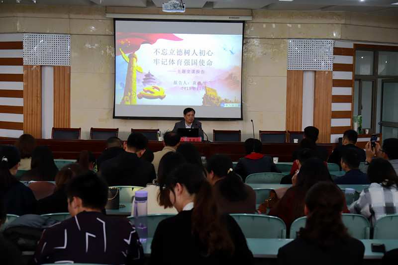 本网讯(英国正版365官方网站 汪暠)11月6日下午,公司党委举行“不忘初心、牢记使命”主题教育专题党课报告会。公司党委书记袁德水作题为《不忘立德树人初心、牢记体育强国使命》的党课报告。全院师生党员参加了报告会。