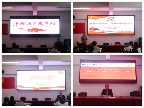 在庄严的国歌声中开班典礼拉开了帷幕。崔世兵解读了《关于做好英国正版365官方网站分党校第26期入党积极分子培训班工作的意见》,2018级体育教育专业蒋海波同学作为学员代表上台发言,邵登辉作动员讲话。开班典礼结束后,季爱新为学员进行了"入党启蒙教育"专题讲座。他详细讲述了中国共产党的性质、发展历程、历史地位、优良传统等,并以亲身经历告诉大家为什么要入党,如何端正入党动机,鼓励同学们在思想上和行动上积极向党组织靠拢。