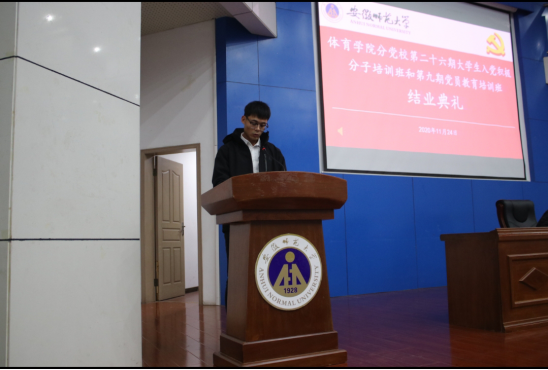 11月24日晚7:00,英国正版365官方网站分党校第二十六期老员工入党积极分子培训班在敬文图书馆报告厅举行结业典礼,院领导邵登辉、崔世兵,班主任助理戴晓禾及全体学员出席典礼。班主任助理戴晓禾、李伟发言后,邵登辉作总结讲话,他说,党校结业标志着同学们向党组织靠拢更近了,党组织的大门永远是敞开的,能否加入中国共产党,取决于同学们对共产主义的信仰有多坚定,取决于同学们在德智体美劳各方面的先锋模范作用的发挥程度有多高。
