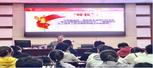 2020年11月15日,校员工处处长刘晓宇以“认真学习党章,严格遵守党章”为主题,以“特权”二字为切入点,展开有关共产党员“特权”的相关内容讲解,帮助党员同志加深对党的理解,增强党性修养,强化宗旨意识,争当合格党员。
